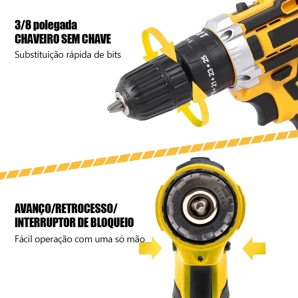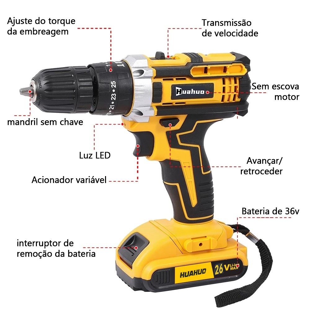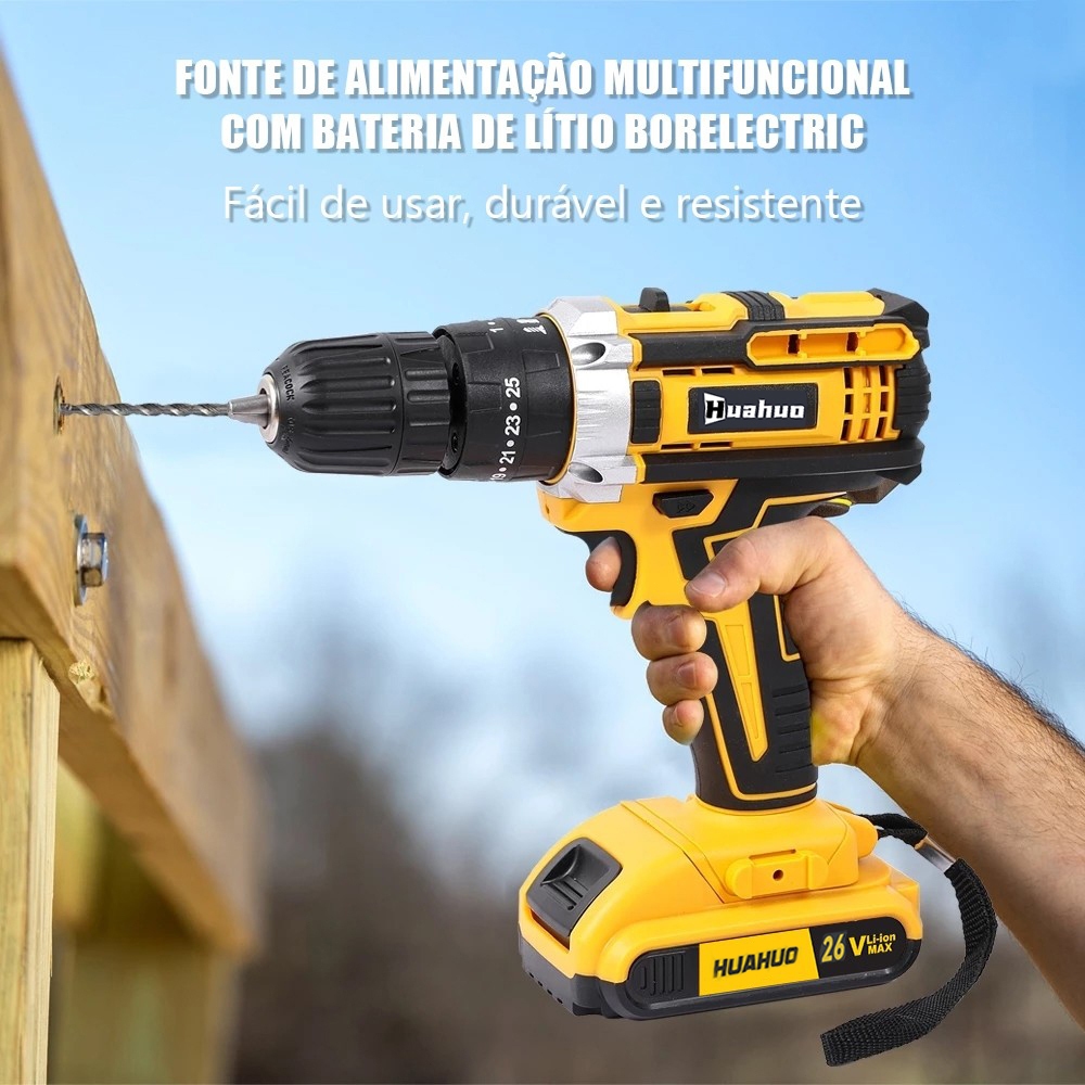 110V/220V Furadeira Parafusadeira 26V/18V/12V Baterias Sem Fio Impacto Com Maleta Completo Broca Bits Caixa de papelão~