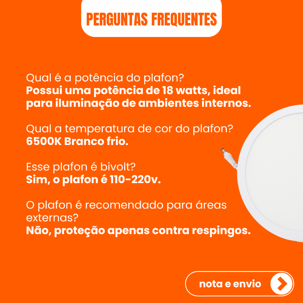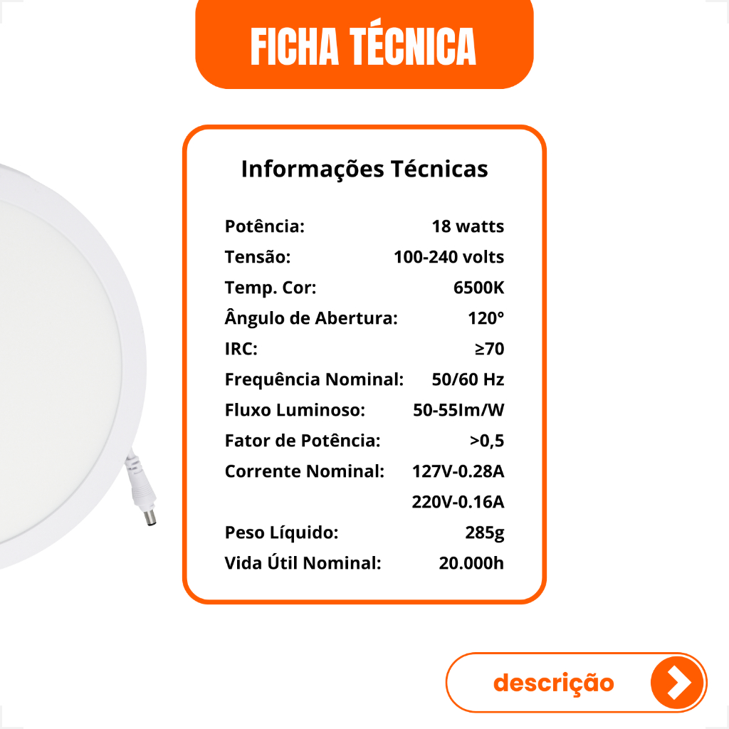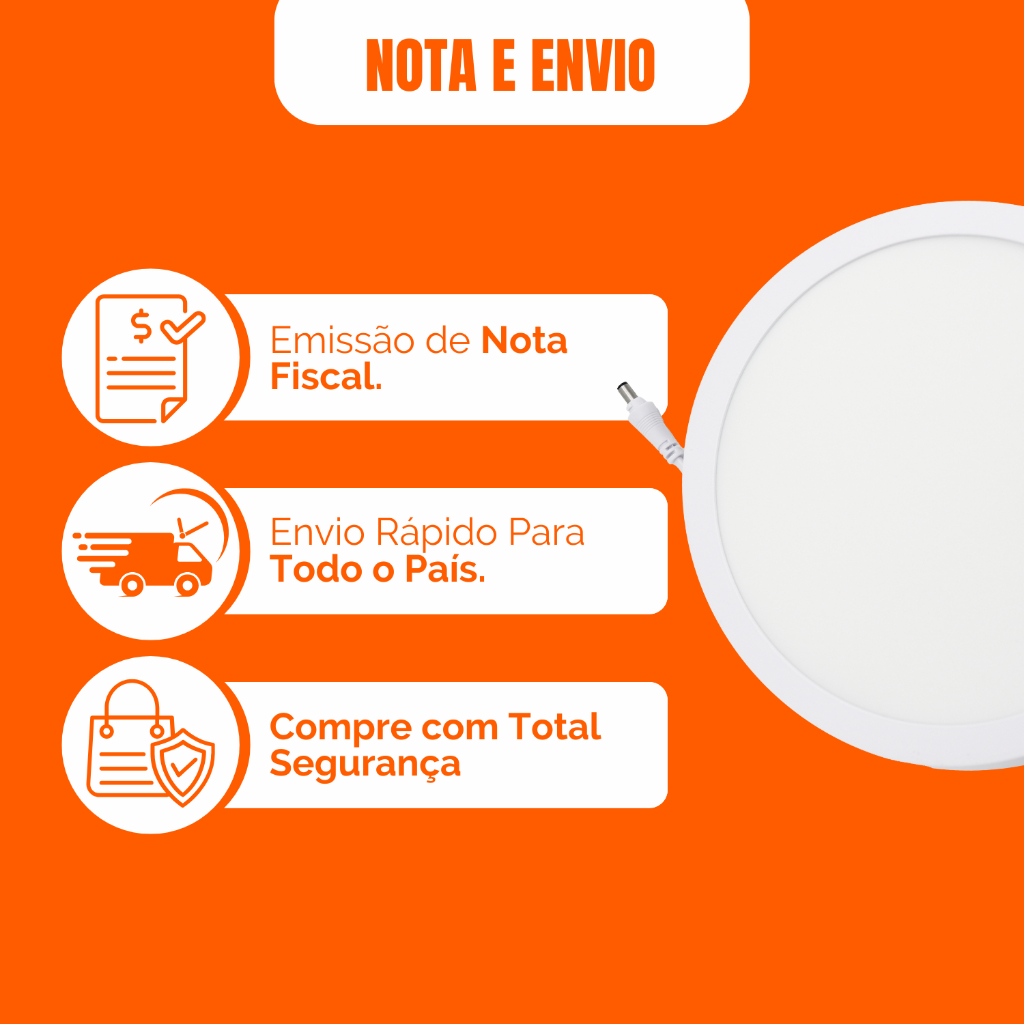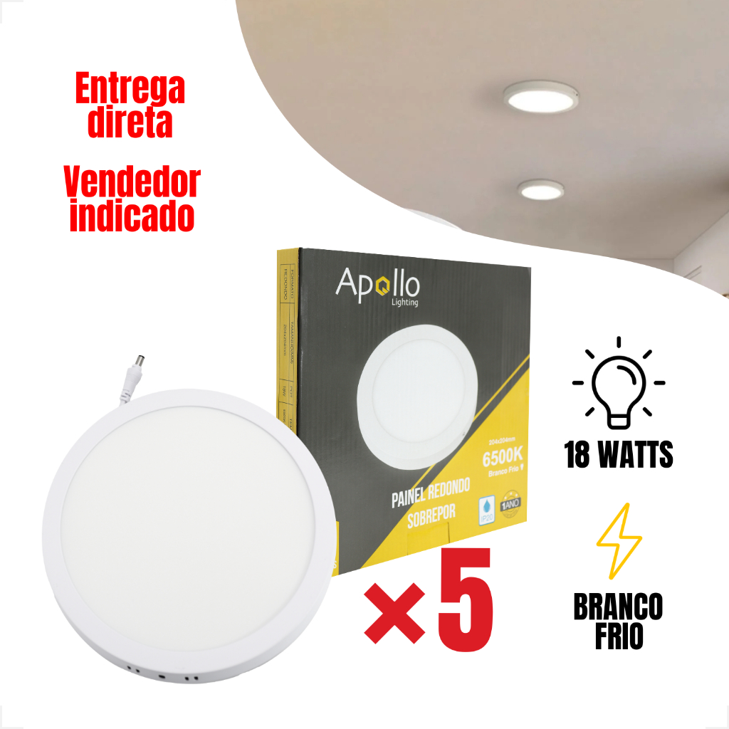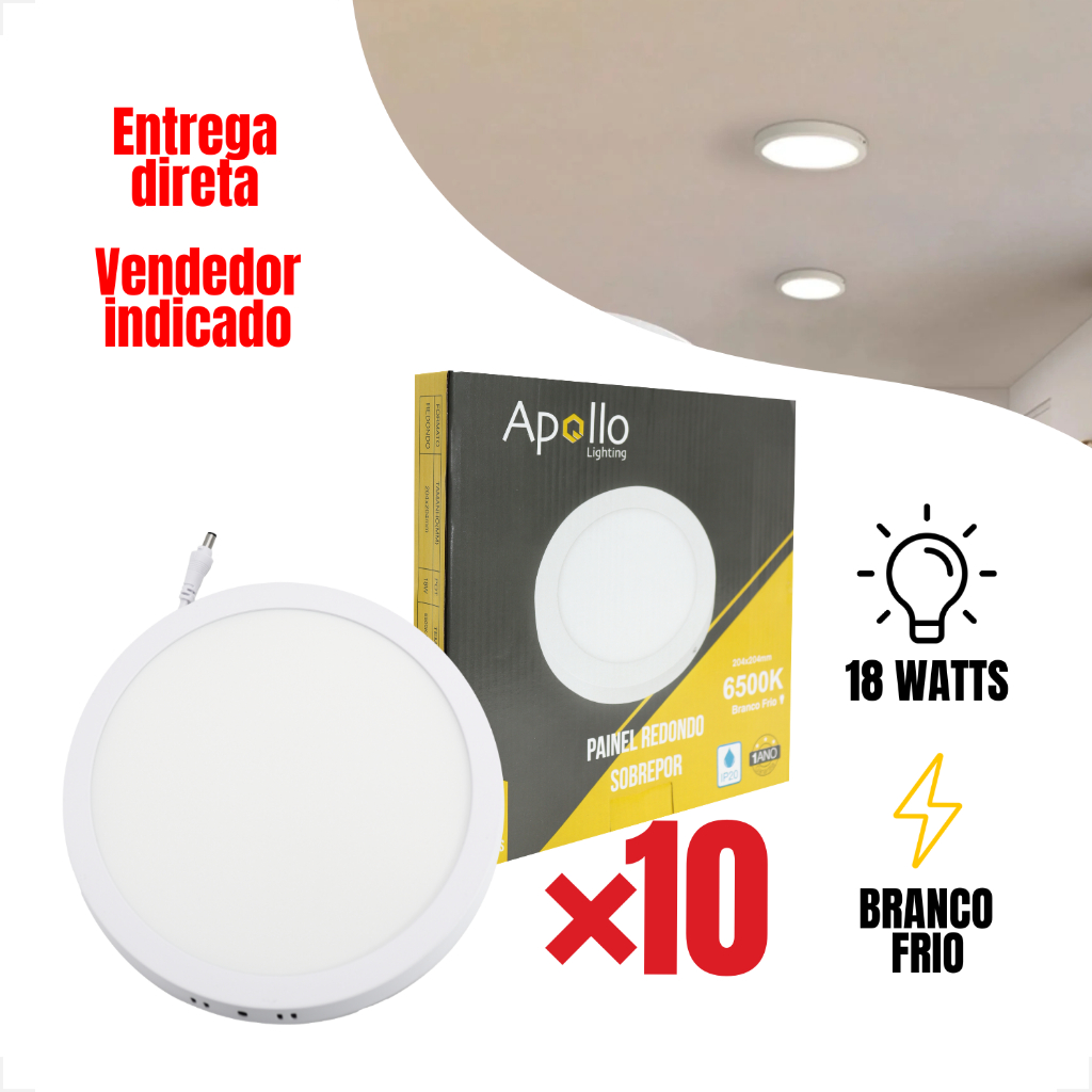 Kit 10 Painel 18w Plafon Redondo Sobrepor 6500K Branco Frio Luminária Led Bivolt Interno Gesso Sanca