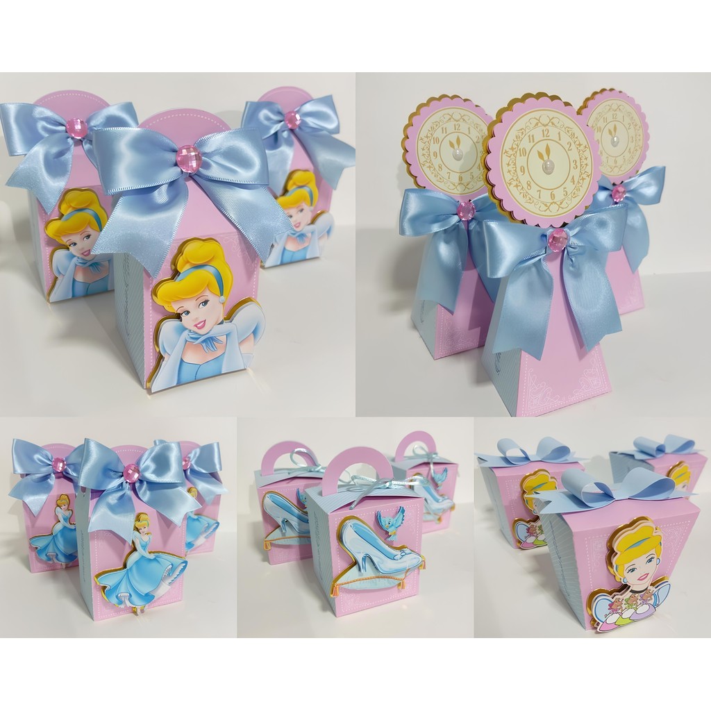 Kit Papelaria Personalizada Princesa Cinderela E Seu Sapatinho De Cristal Caixa Caixinha para Festa DESMONTADO