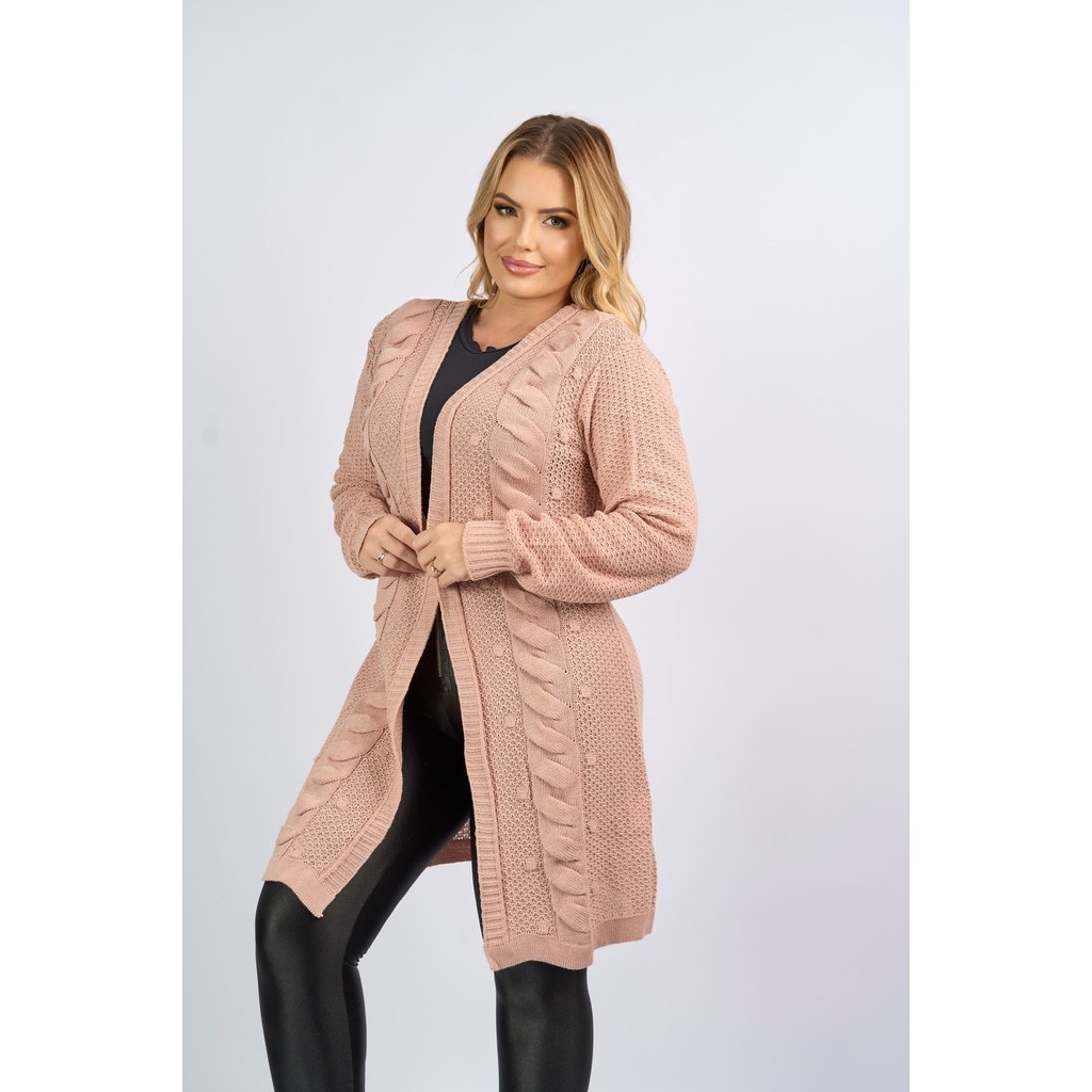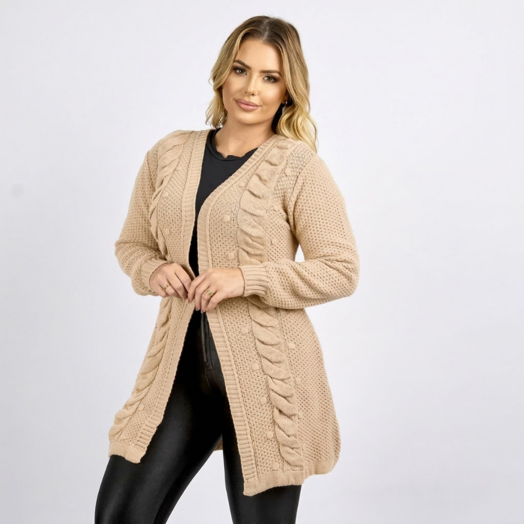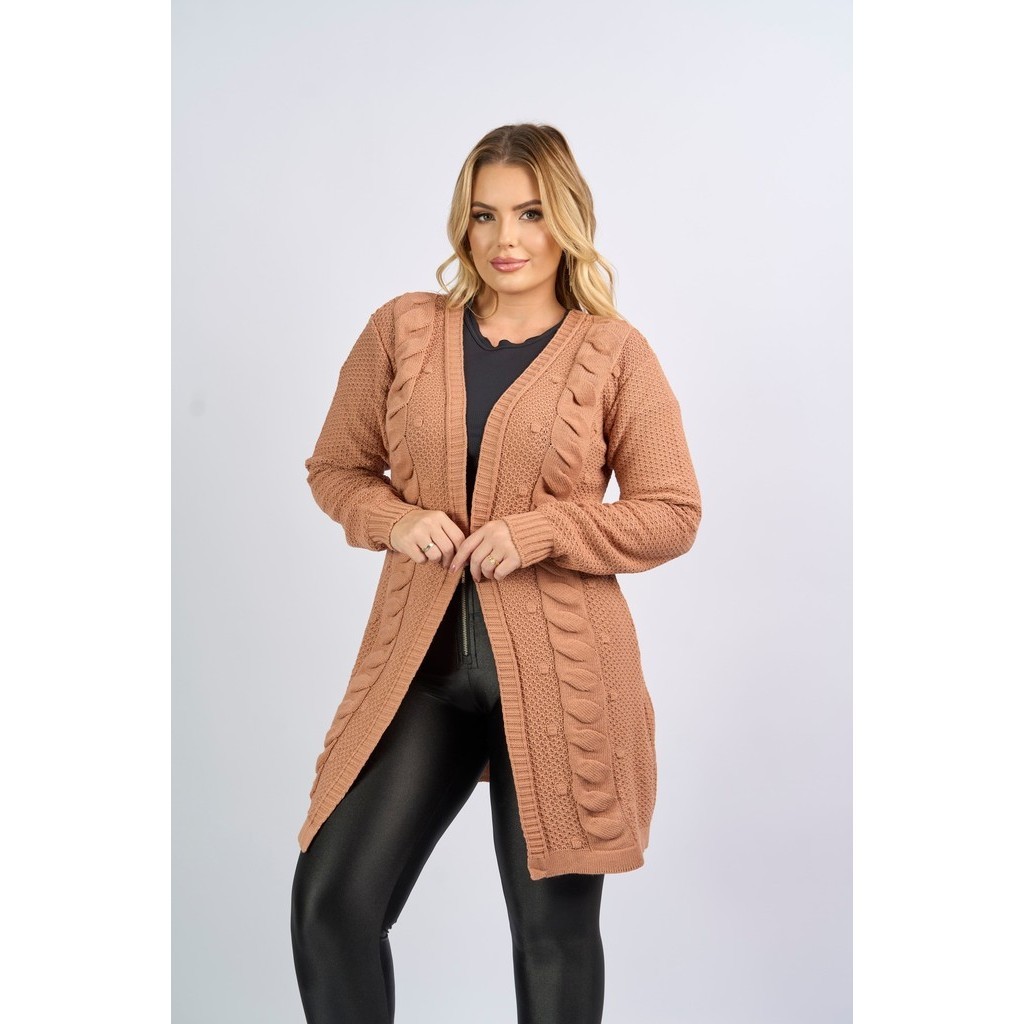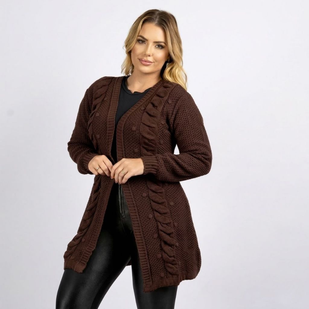 Casaco Cardigan Aberto Manga Longa Tranças Tricô Inverno Lançamento