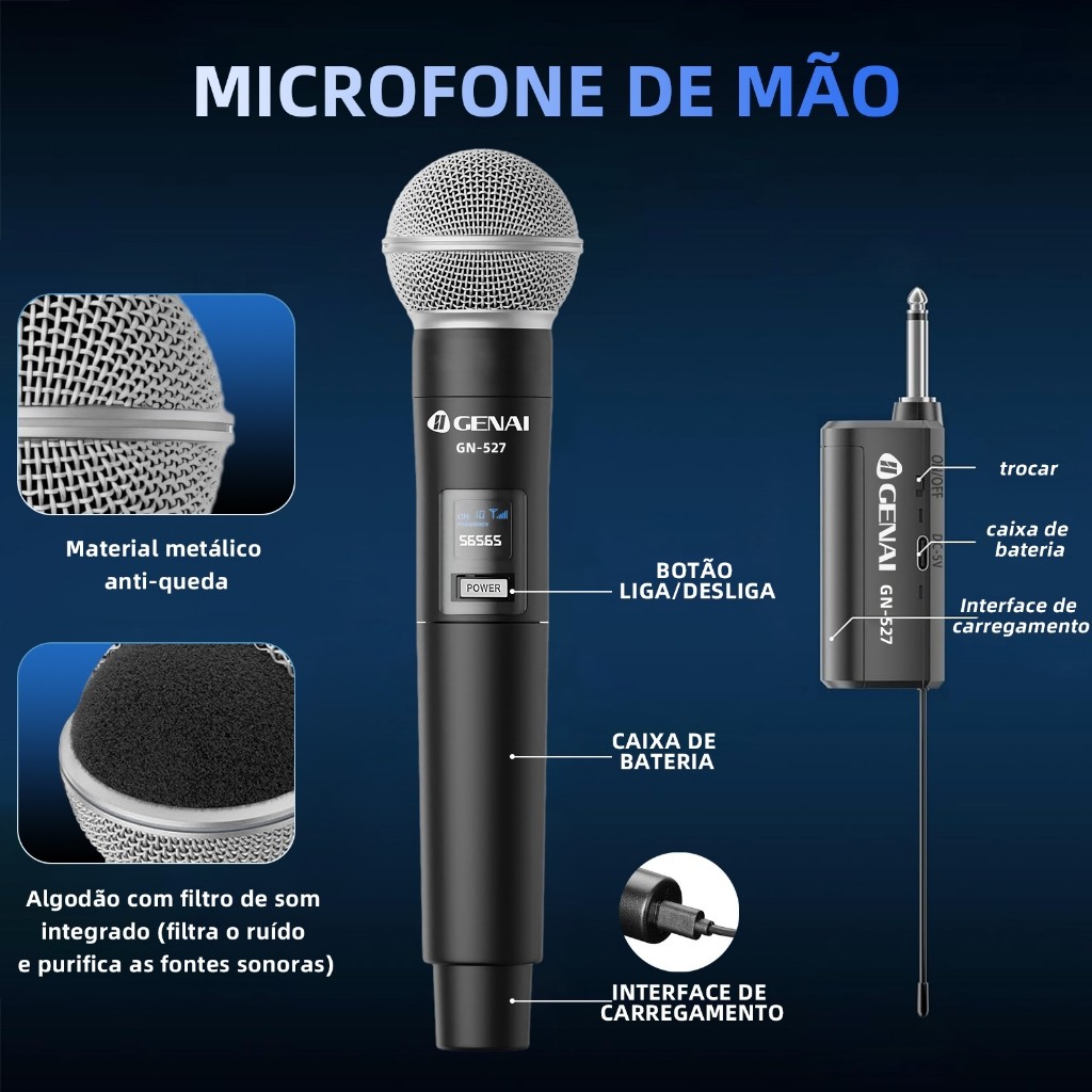 Kit 2 Microfones Premium Bateria Recarregável Sem Fio Sinal Forte Digital