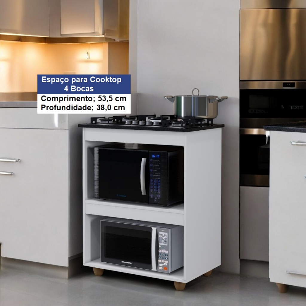 Armário Balcão de Cozinha para Cooktop 04 ou 05 Bocas Turim Kaiki - | Multiuso com Espaço para Micro-ondas e Forno