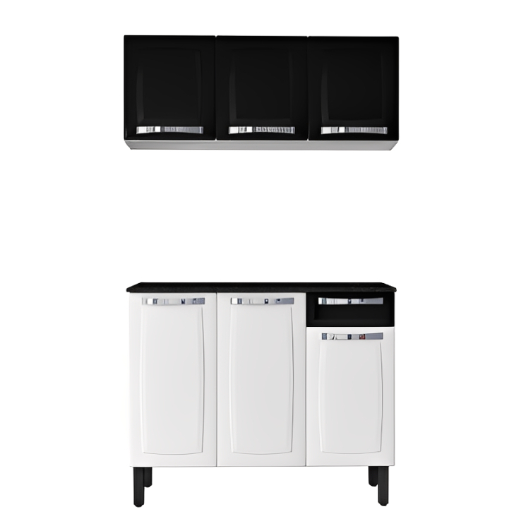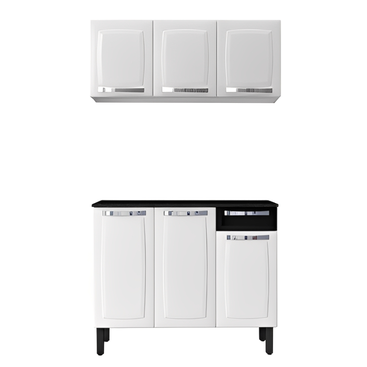 Conjunto Cozinha Itatiaia Rose Aço Branco Balcão com Gavetas 105cm + Armário Aéreo Moderno