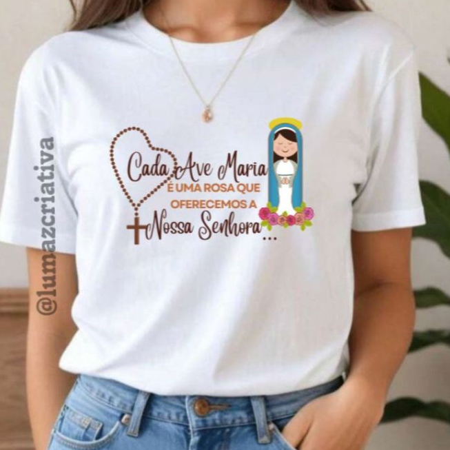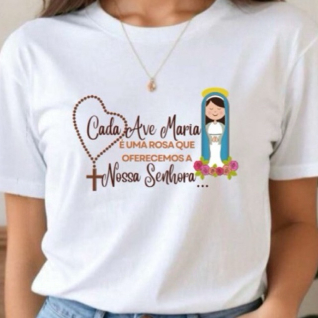 Blusa Católica Religiosa Camiseta Feminina e Unissex, Roupa Menina Frei gilson tshirts Nossa Senhora