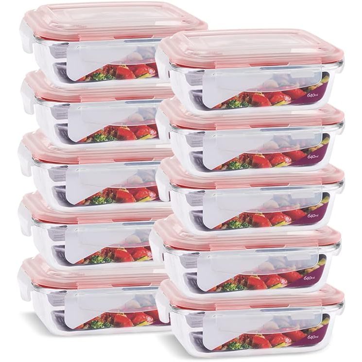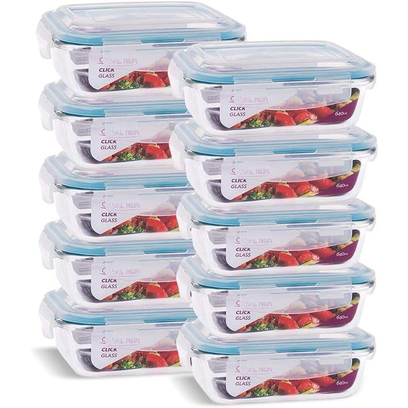 Kit 10 Potes de Vidro 640ml Hermético Marmita Fit com Tampa 4 Travas