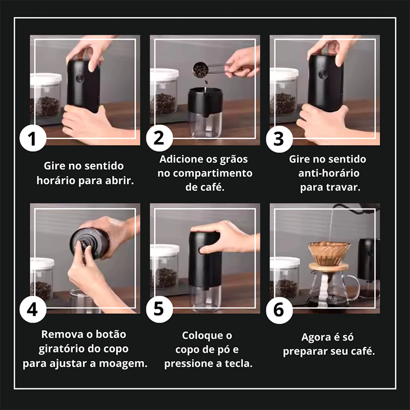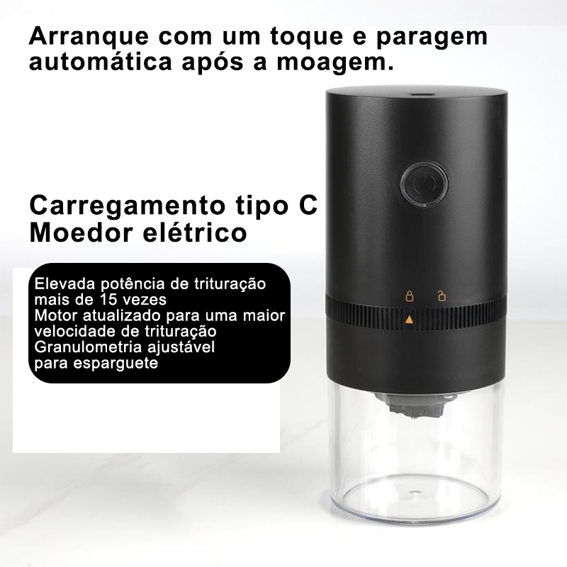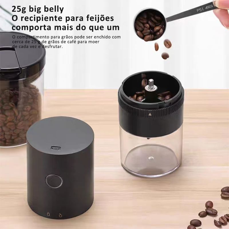 Moedor Café Elétrico Portátil USB-C - Moagem Cerâmica Ajustável 25g com Autostop e Bateria 1250mAh QUEBOM
