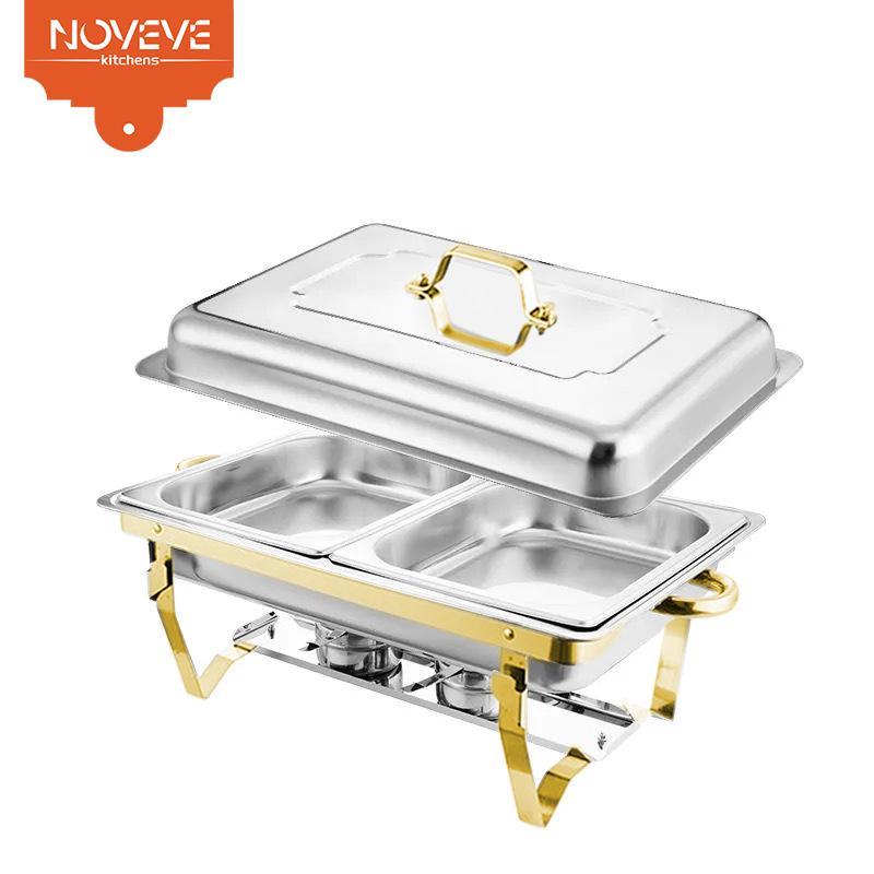 Rechaud Inox 12 Litros Profissional Retangular Banho Maria Kit Completo 6 Peças para Buffet Grande