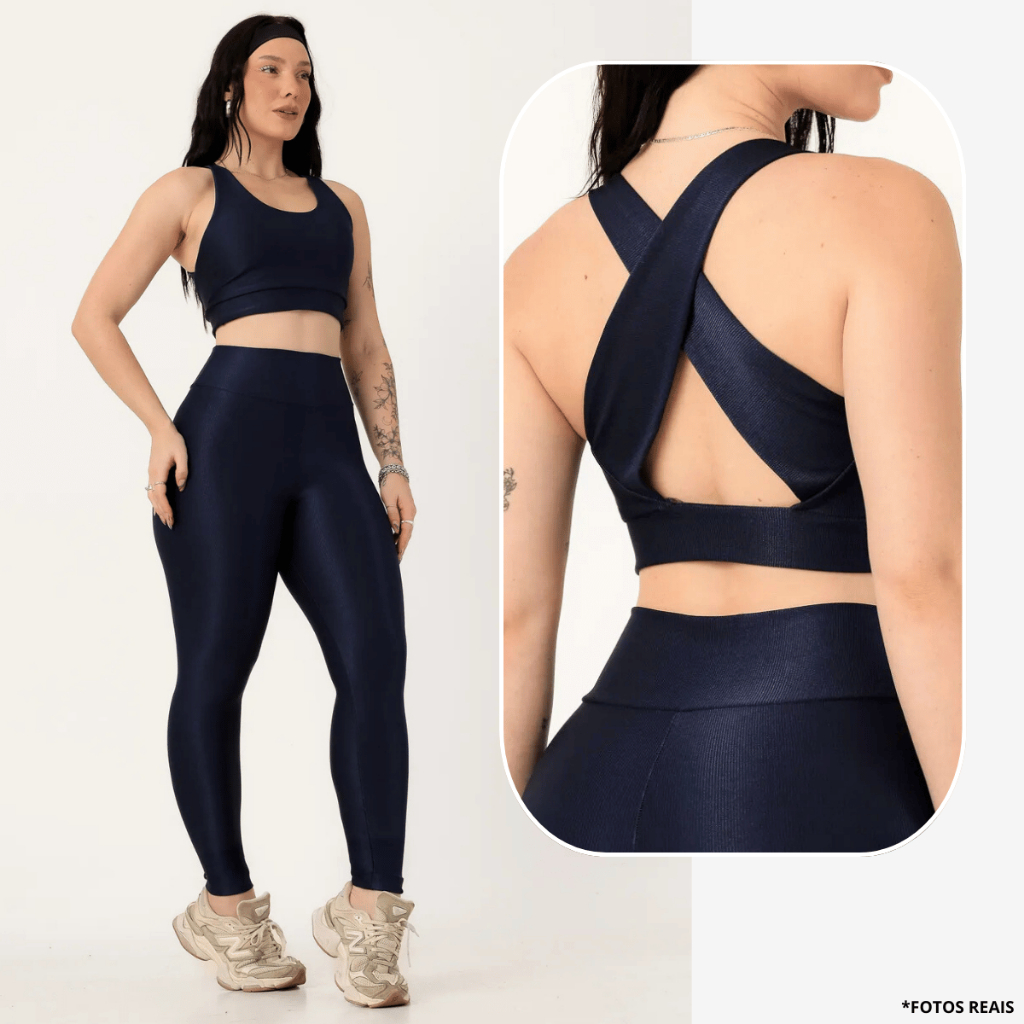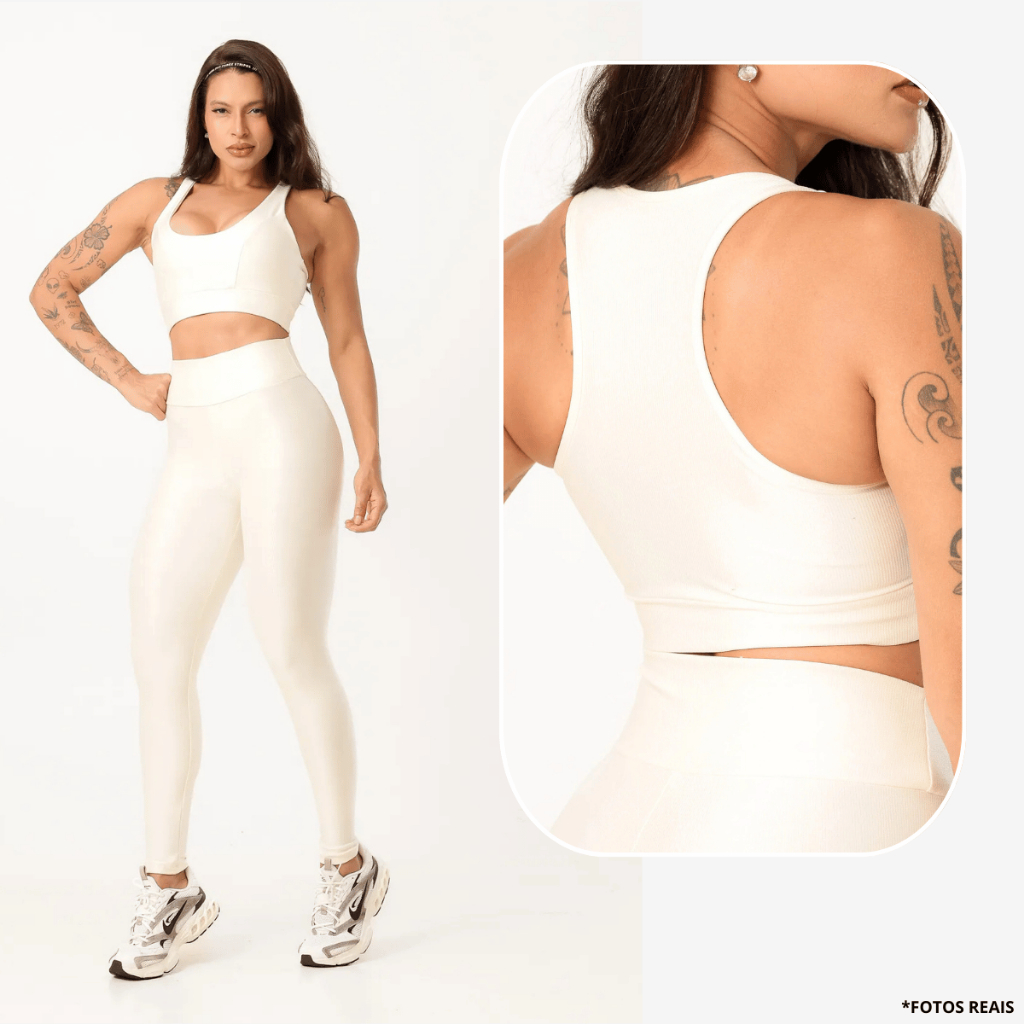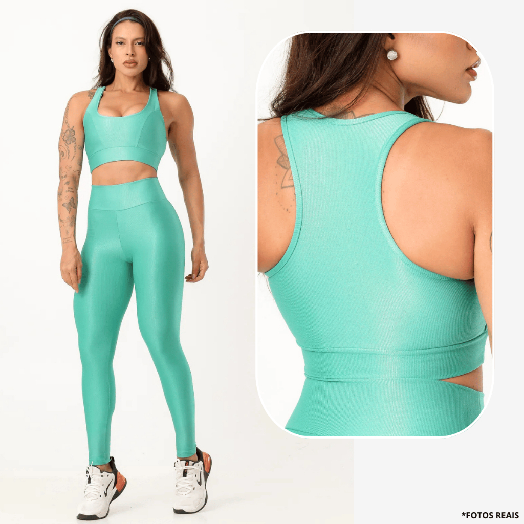 Conjunto Feminino Fitness Canelado Zero Transparencia Legging e Top Academia Treino