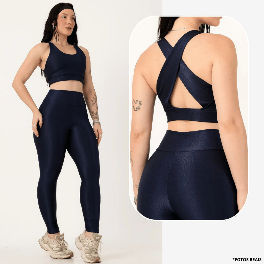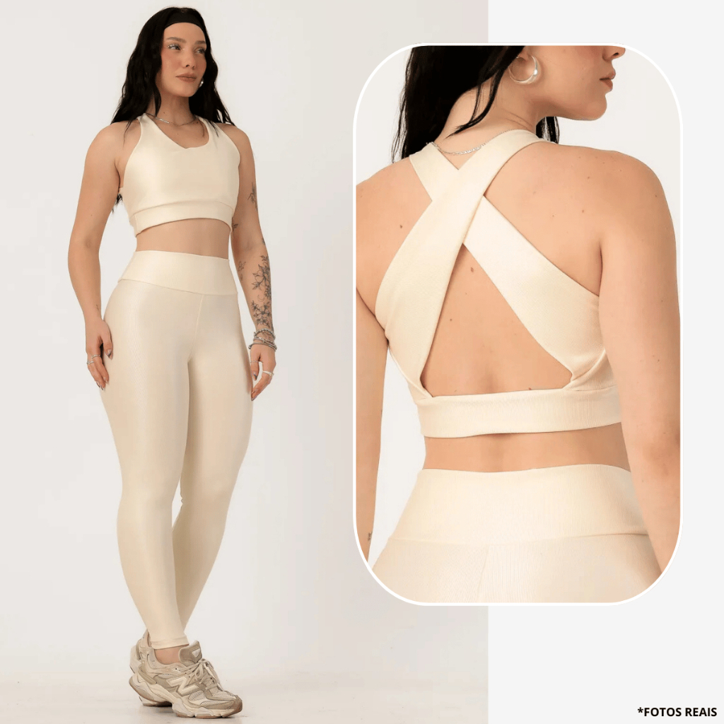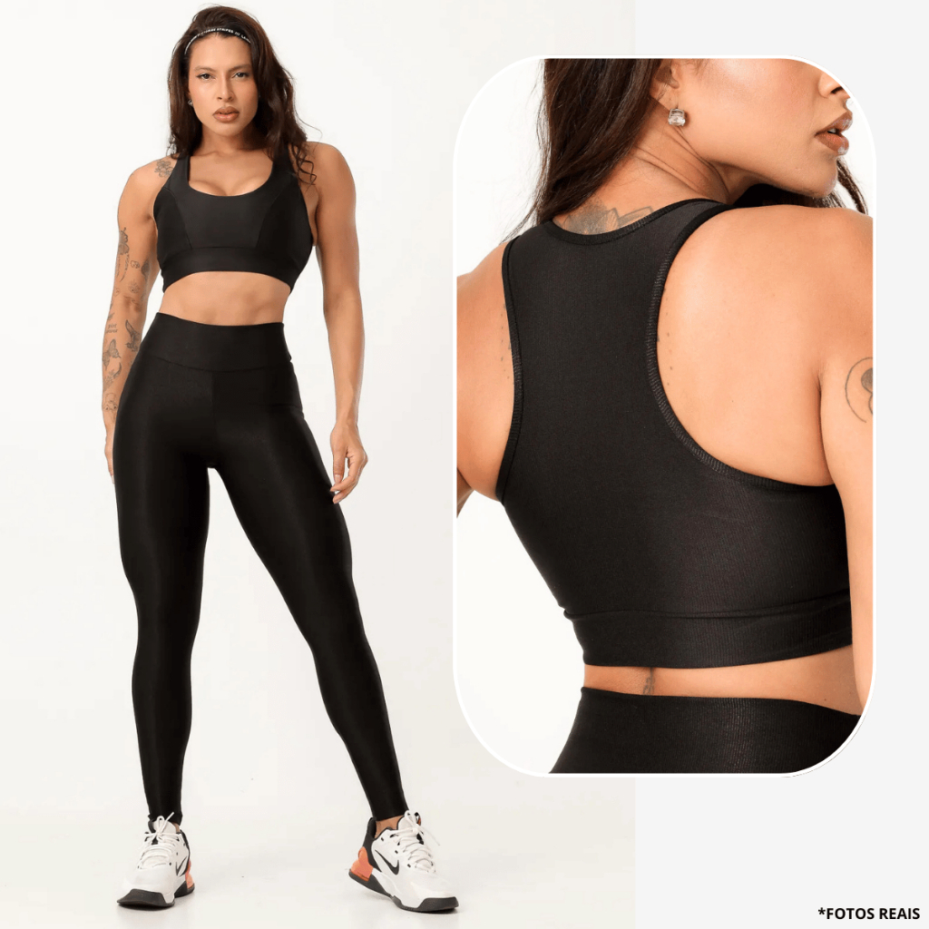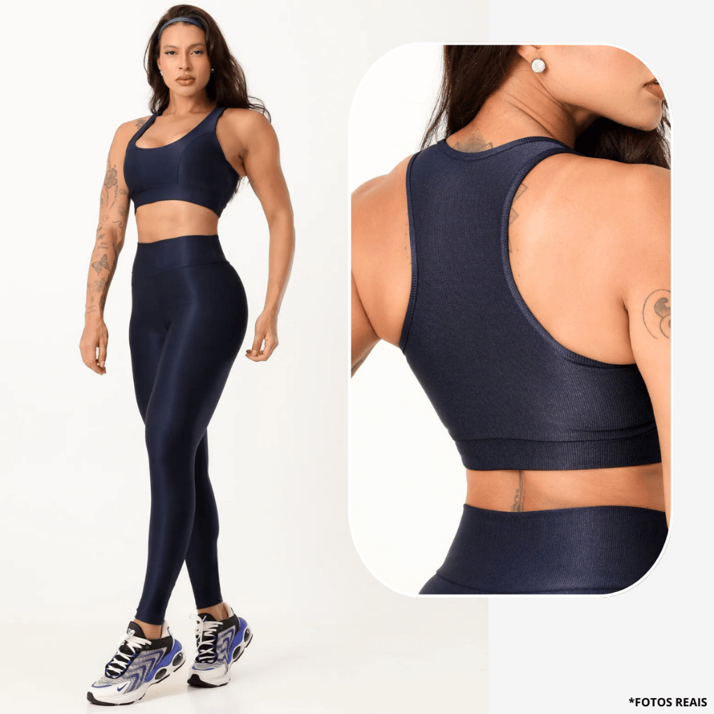 Conjunto Feminino Fitness Canelado Zero Transparencia Legging e Top Academia Treino