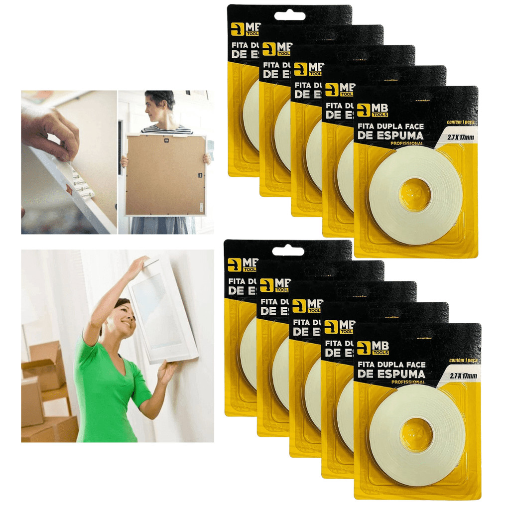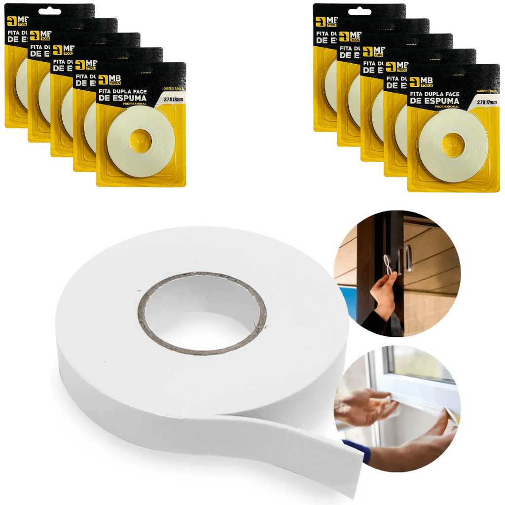 Kit 10 fitas adesiva dupla face de espuma, em rolo 2,7 x 17mm