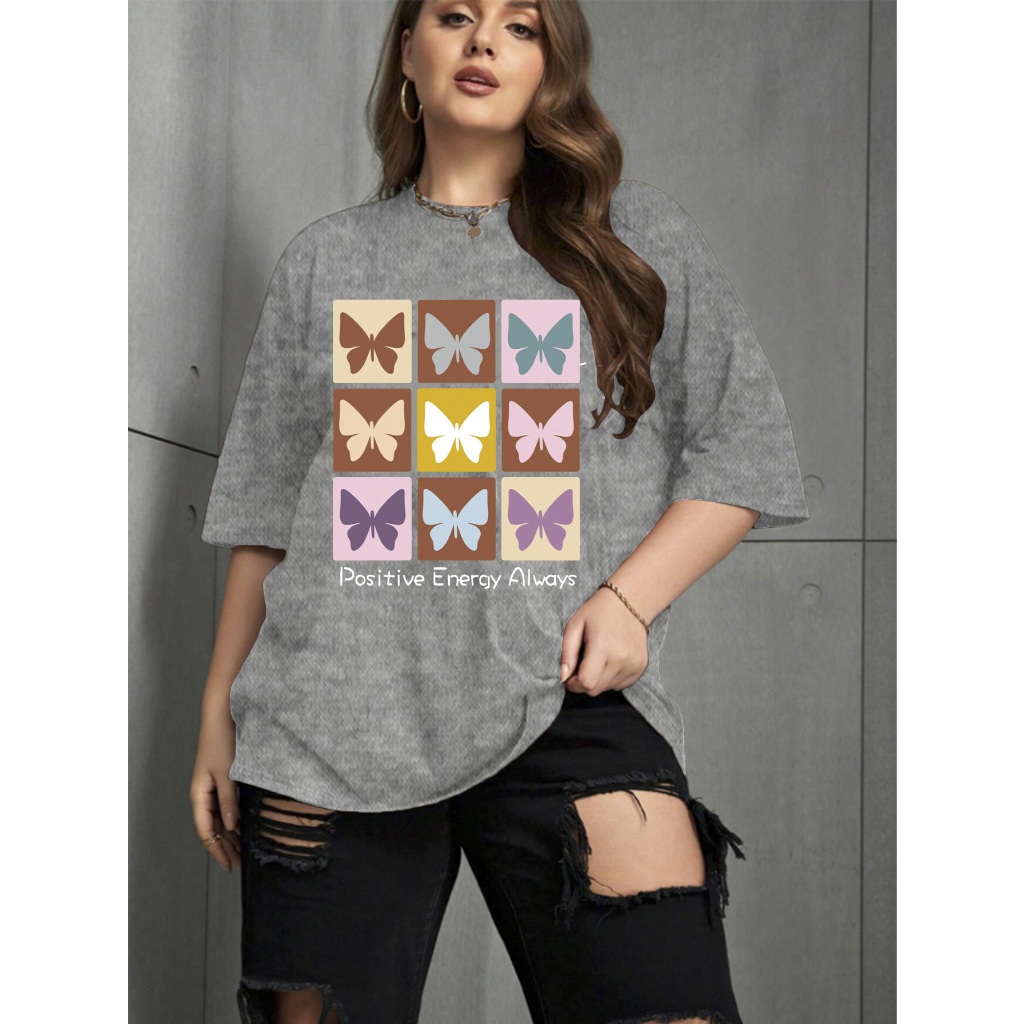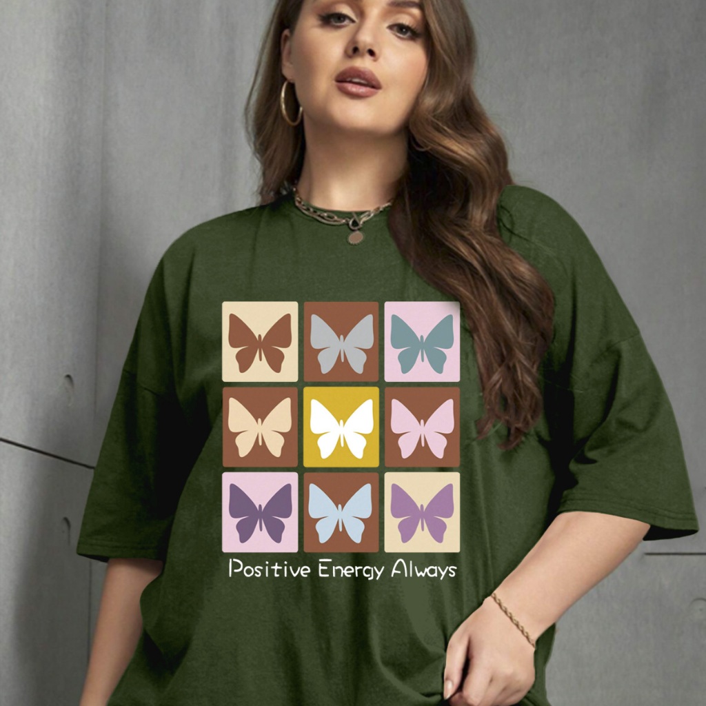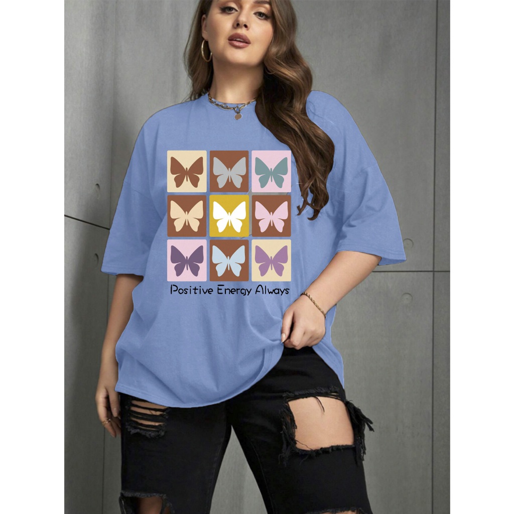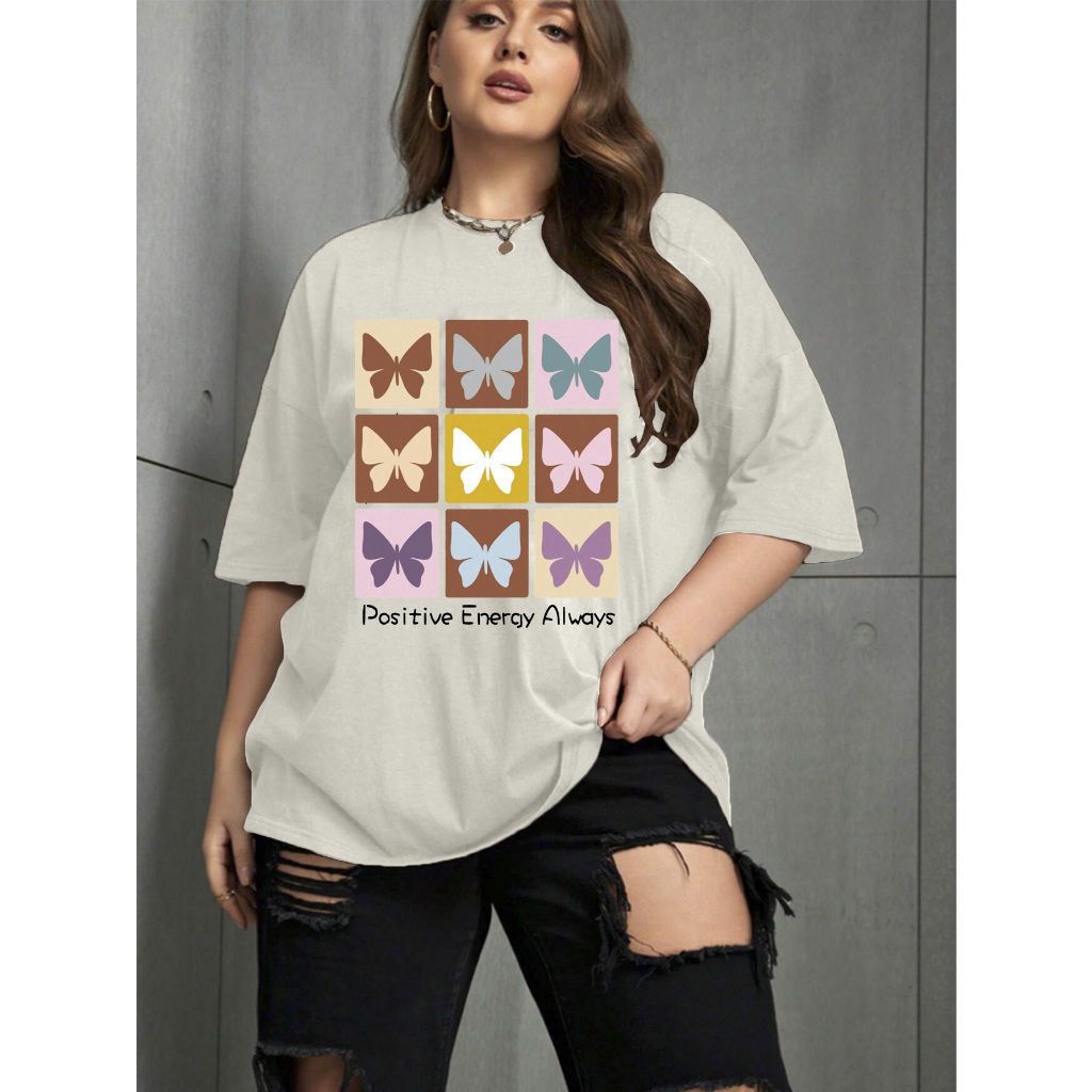 Camiseta Oversized Unissex Plus Size Confortavel Blogueira T-Shirt Estampada Borboletas Frase Posit