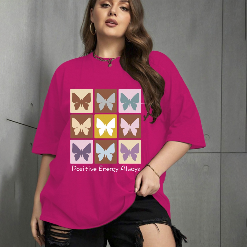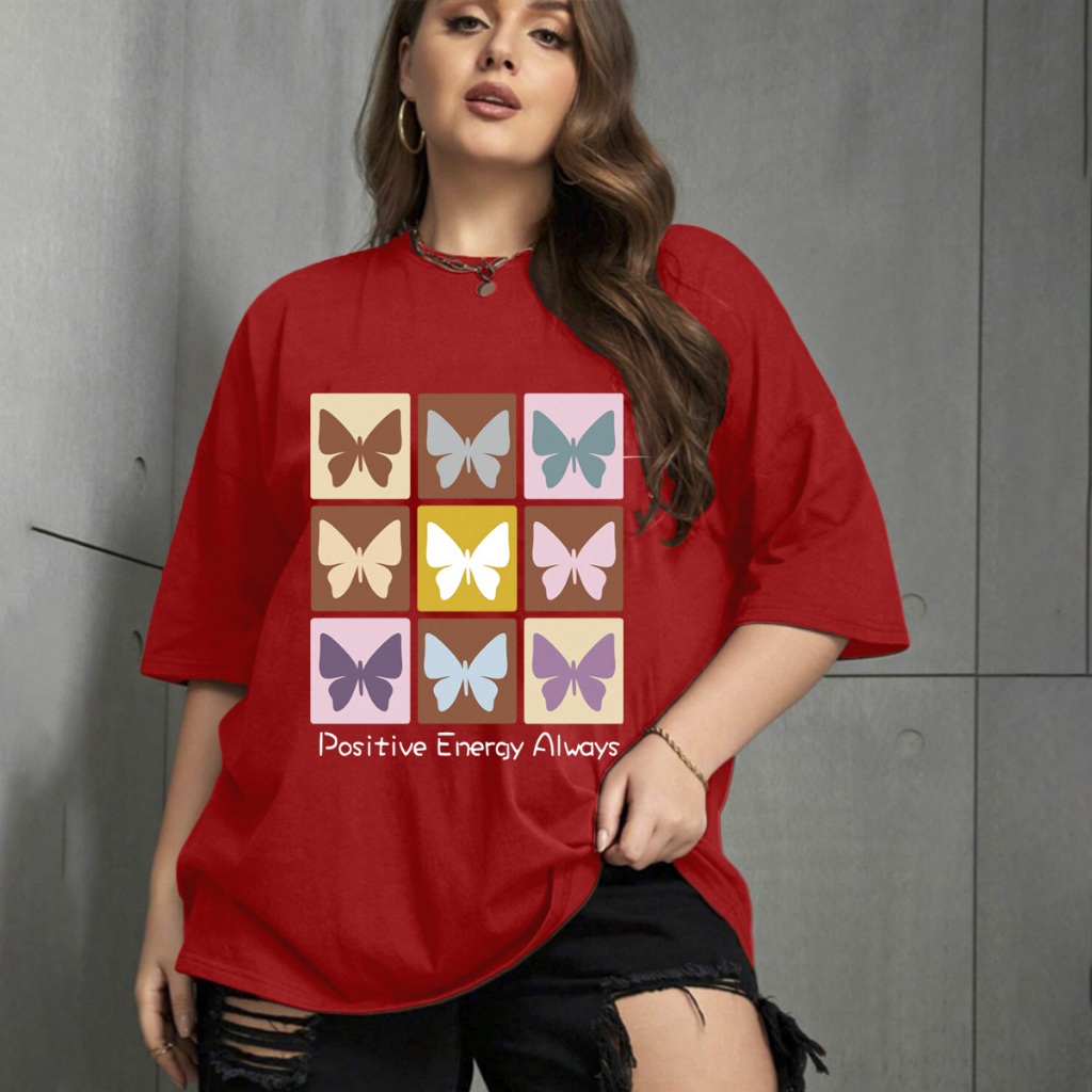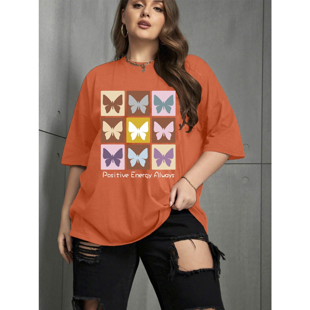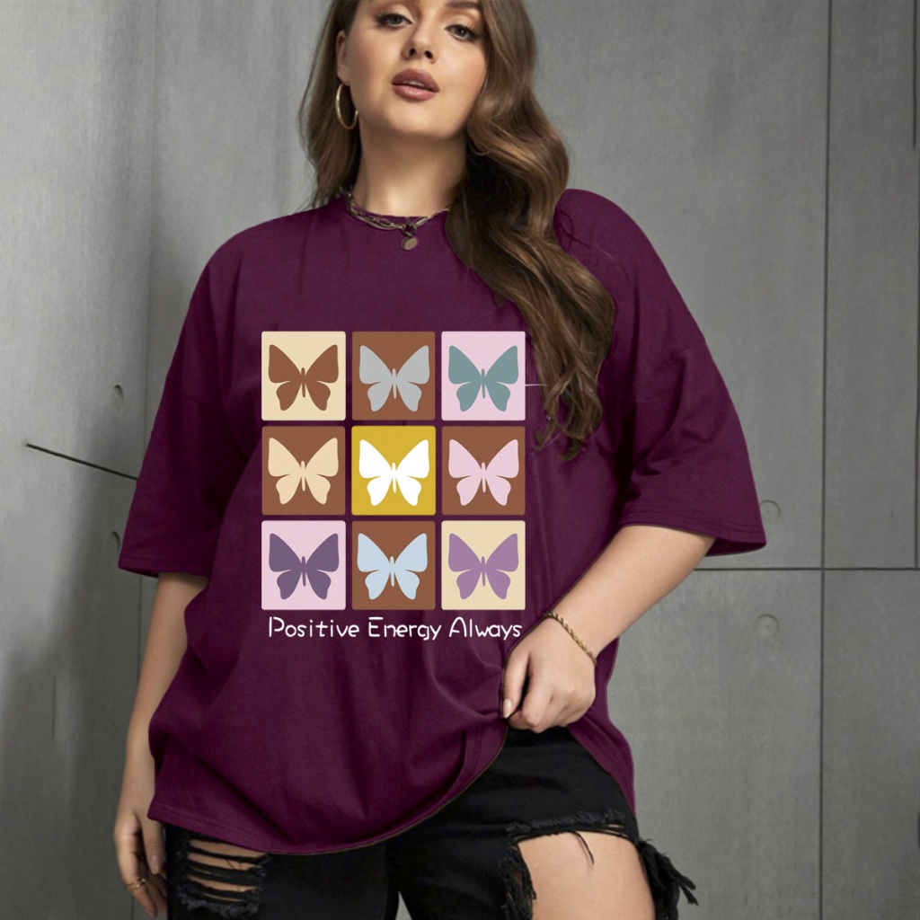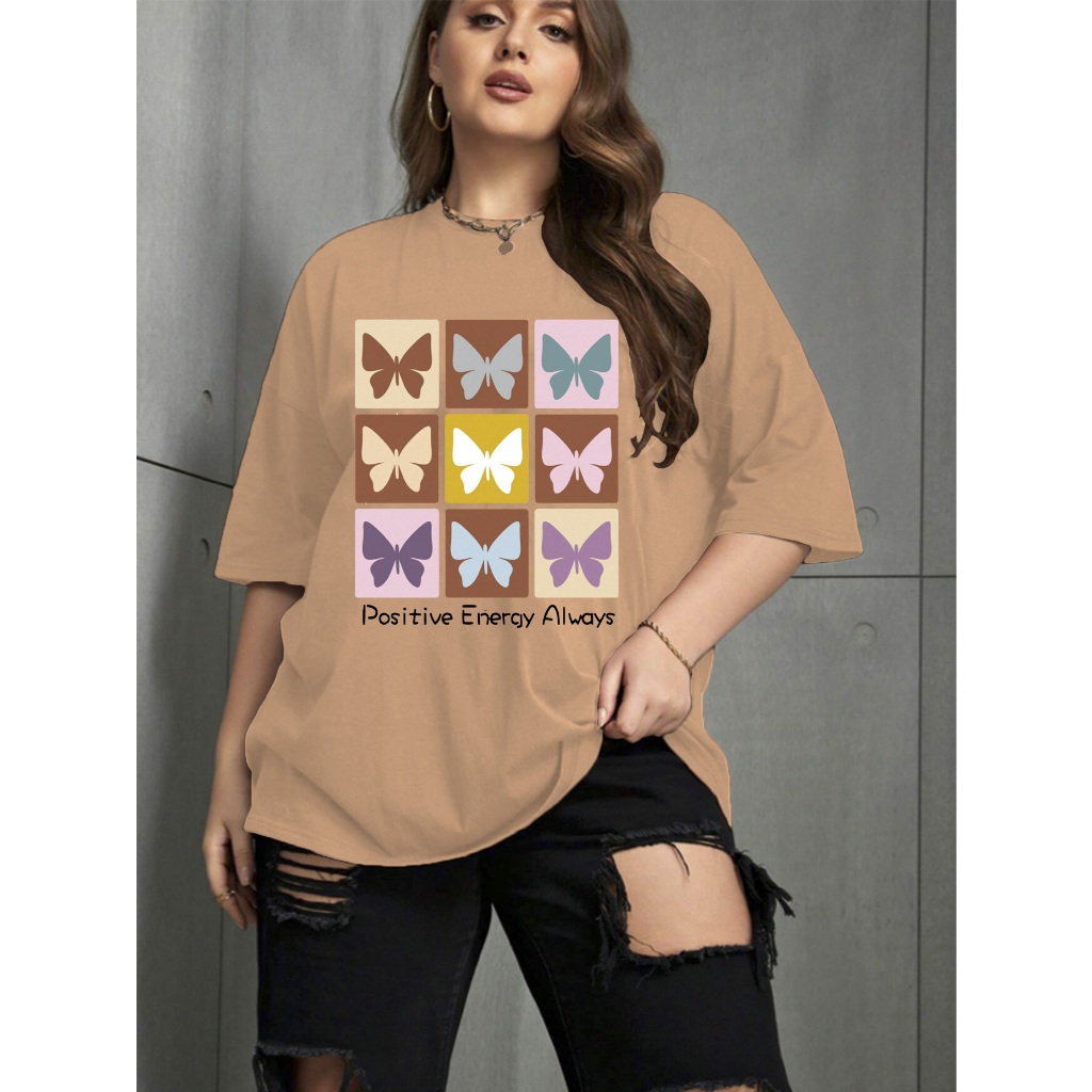 Camiseta Oversized Unissex Plus Size Confortavel Blogueira T-Shirt Estampada Borboletas Frase Posit