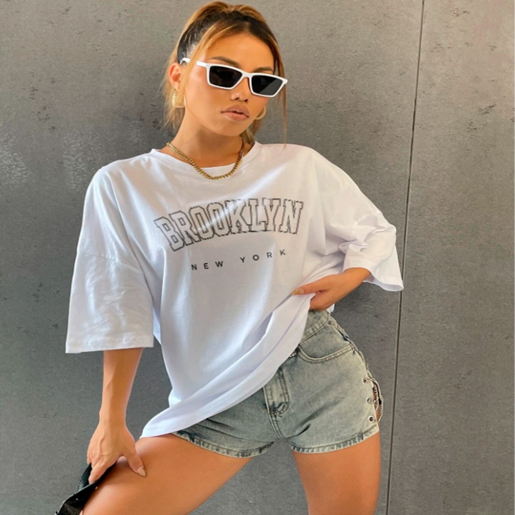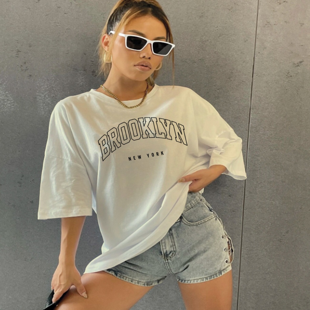 Camiseta Life Style Americana Moderna Estampa Brooklyn Confortável Moda Gringa Bairro New York Leve