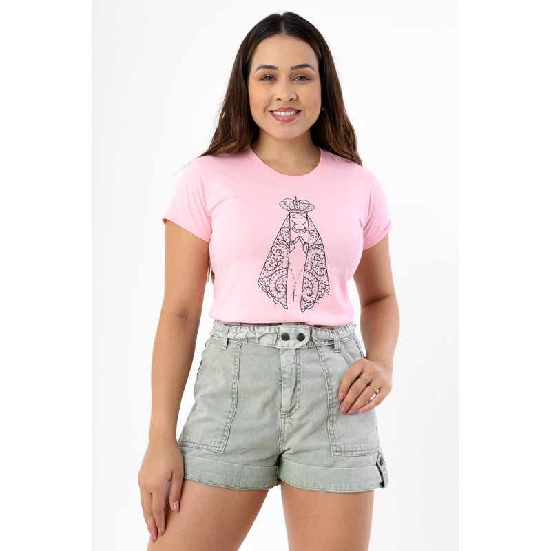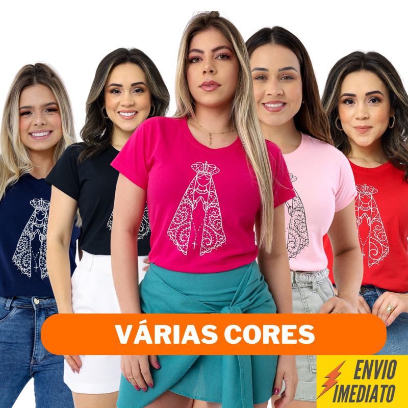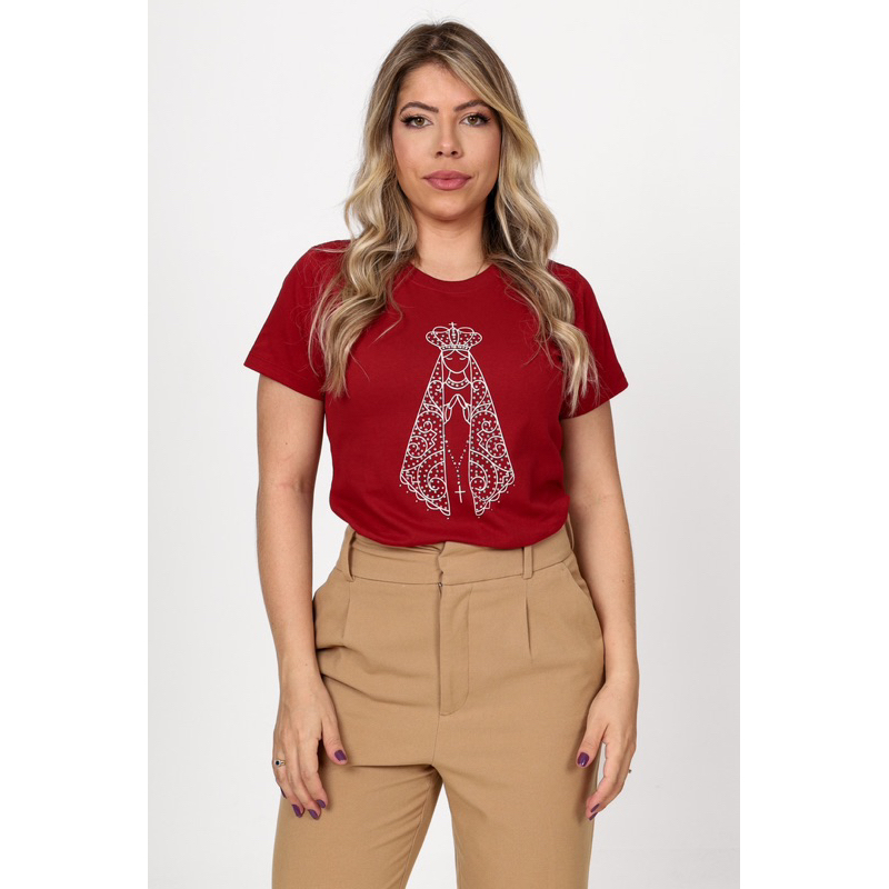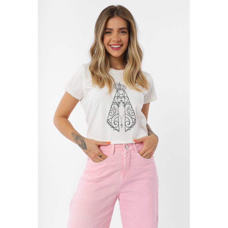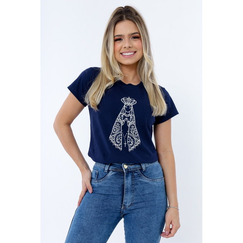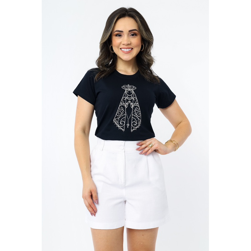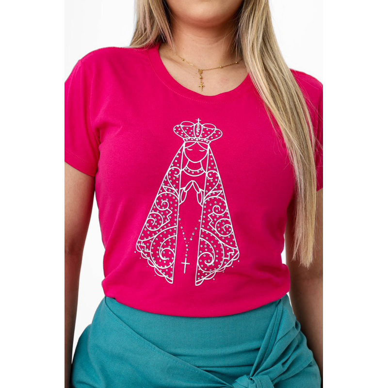 T Shirt De Algodão Nossa Senhora Aparecida Com Aplicação De Strass Blusa De Algodão Católica