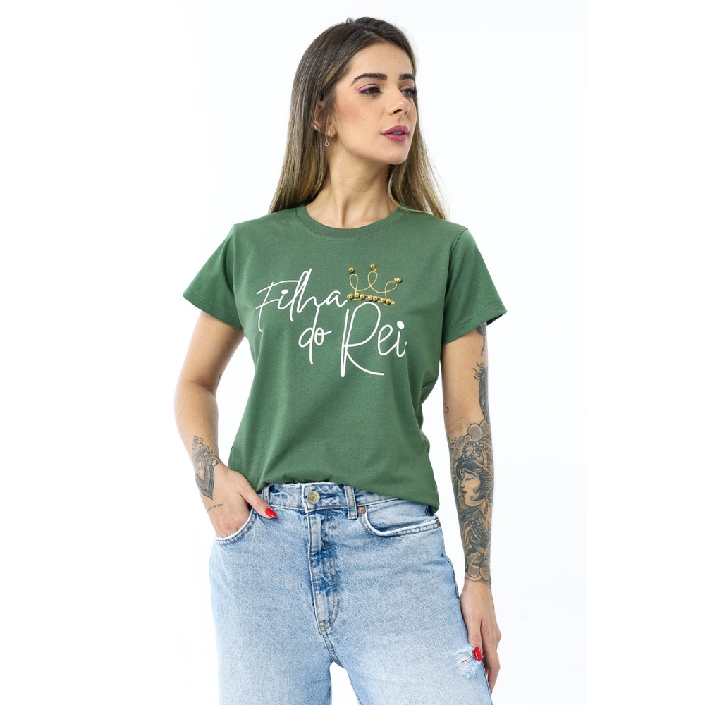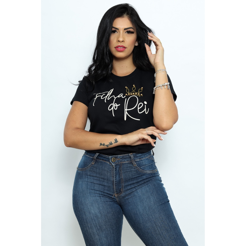 T Shirt Feminina De Algodão Filha Do Rei Com Perolas Blusa Feminina Varias Cores