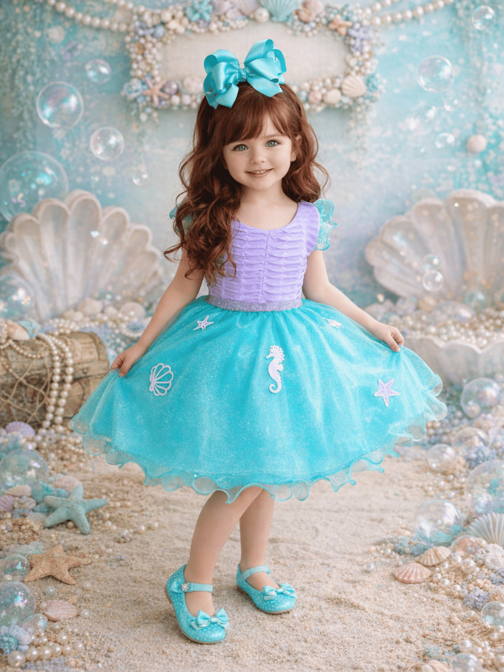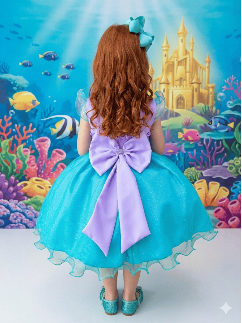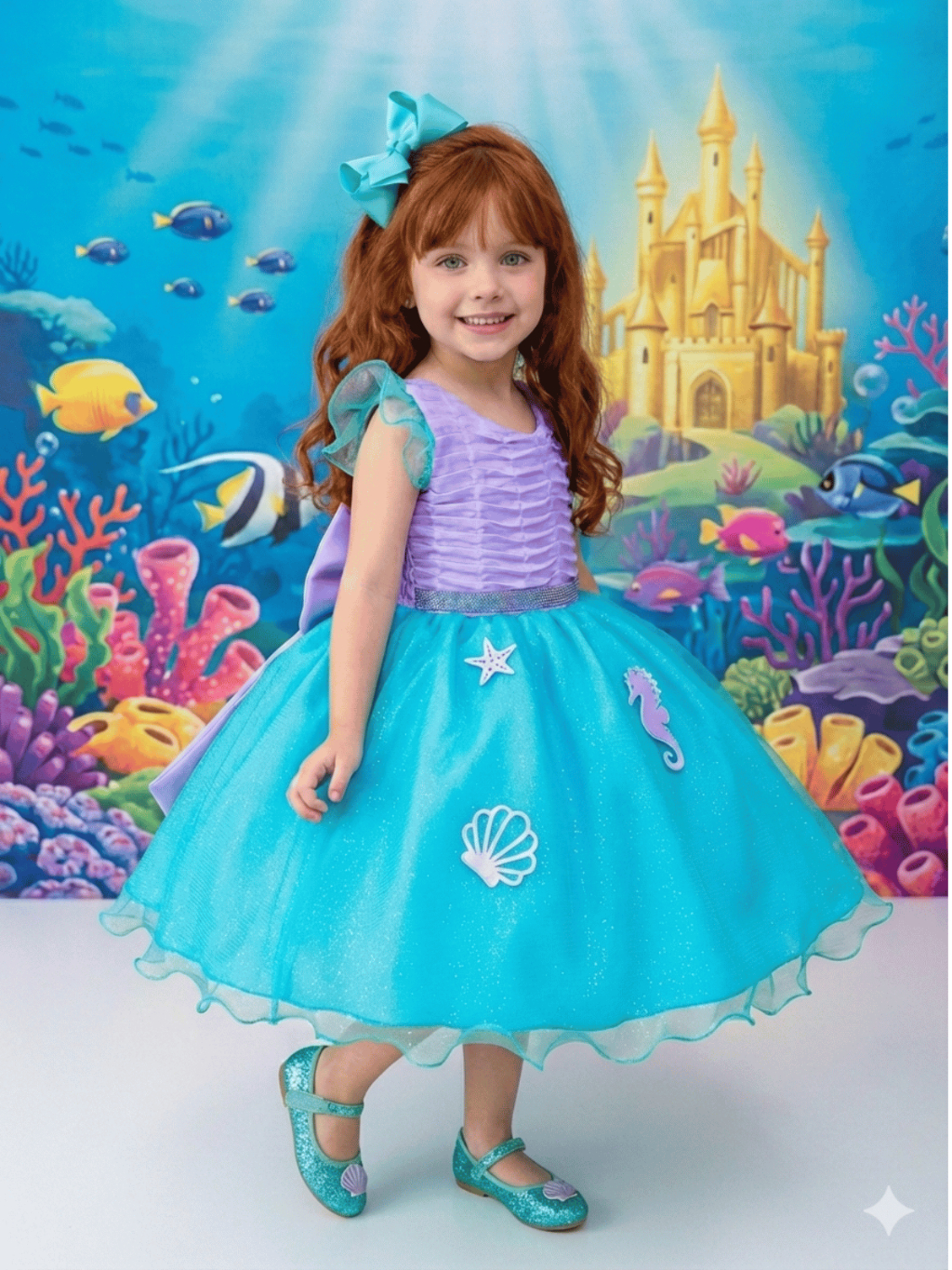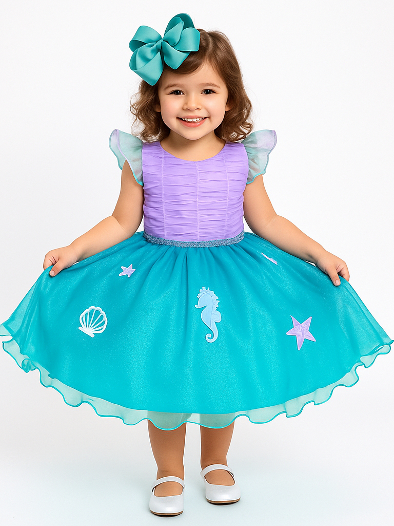 Vestido Infantil Fundo do Mar Luxo Princesa Ariel Aniversário de 1 a 12 anos
