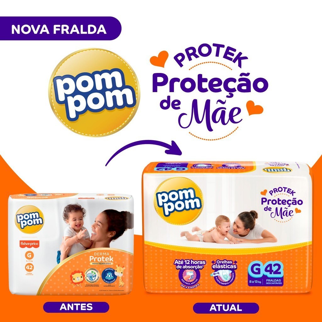 Kit 4 Fraldas Pom Pom Derma Protek Mega G com 42un cada