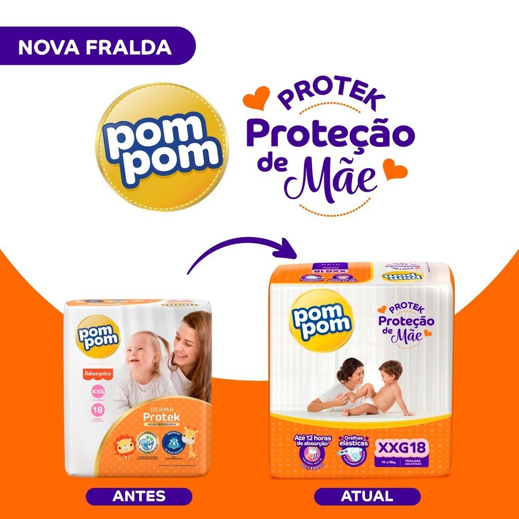 Kit 3 Fraldas Pom Pom Protek Proteção de Mãe Jumbo XXG com 18un cada