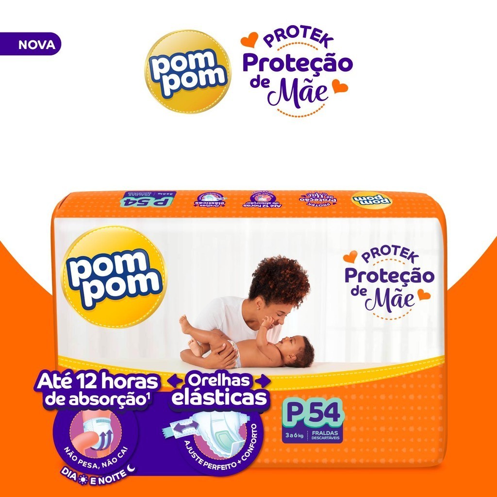 Kit 2 Fraldas Pom Pom Derma Protek Mega P com 54un cada