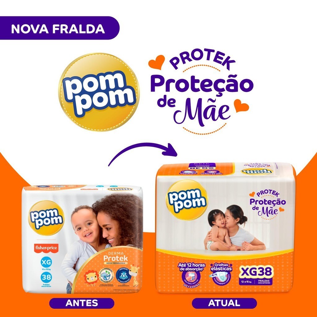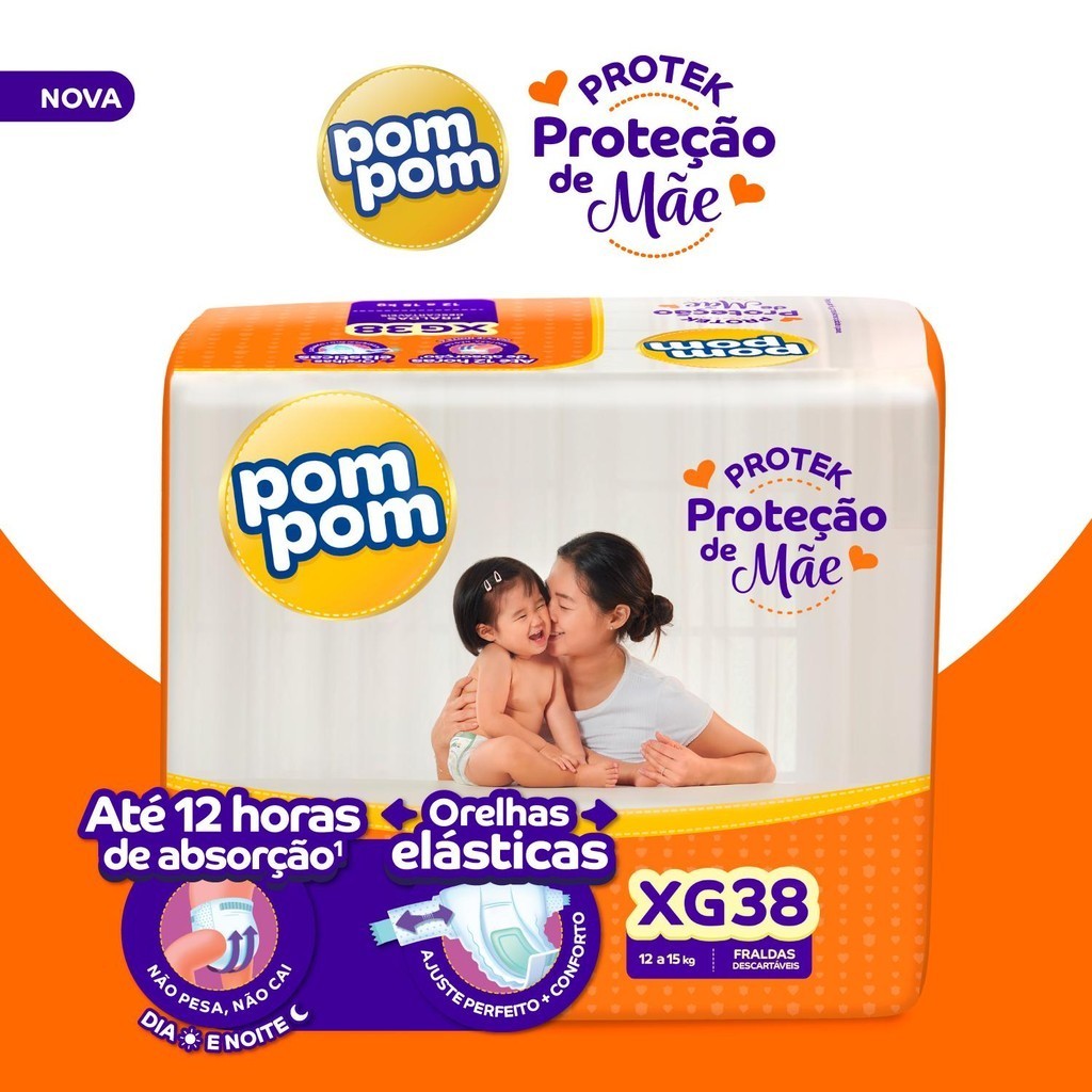 Kit 4 Fraldas Pom Pom Protek Proteção de Mãe Mega XG com 38un cada