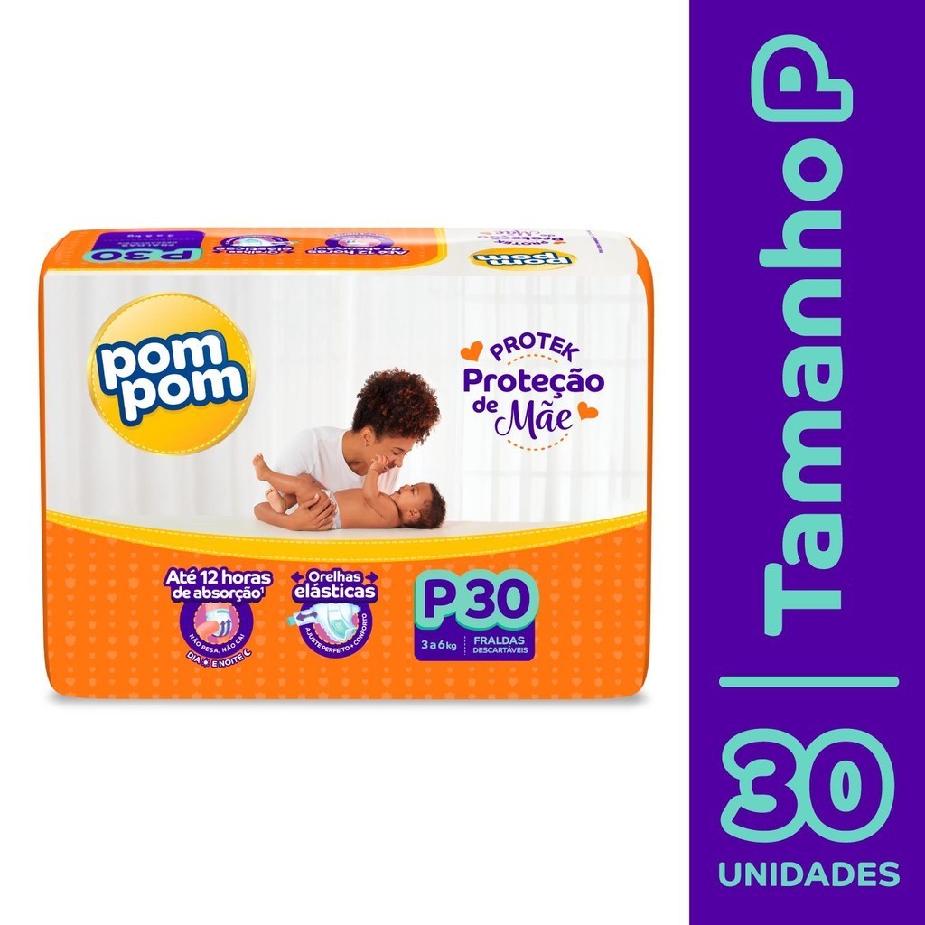 Kit 6 Fraldas Pom Pom Protek Proteção de Mãe Jumbo P com 30un cada