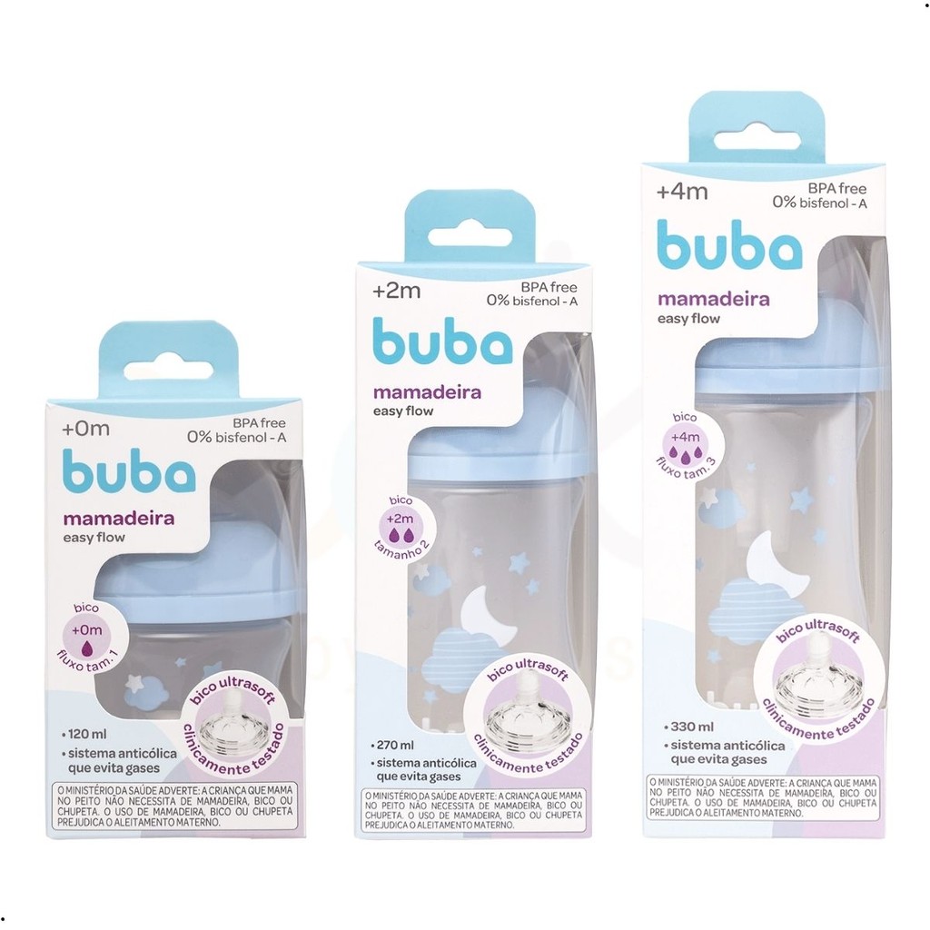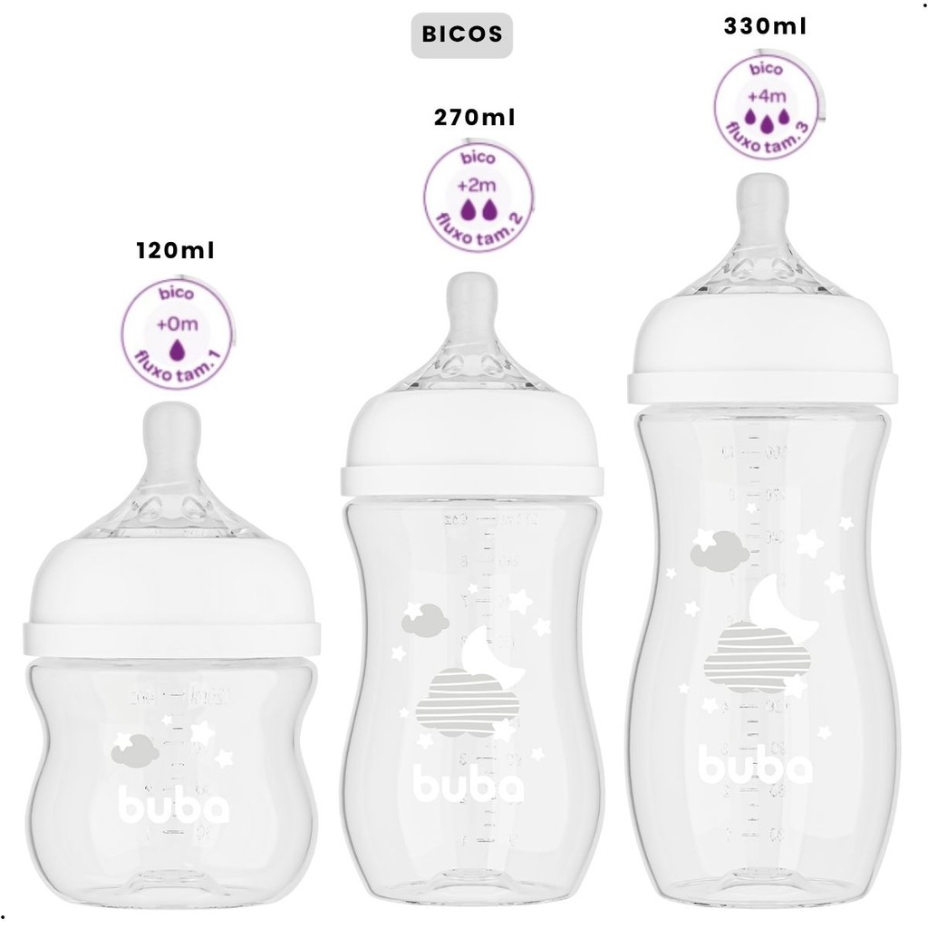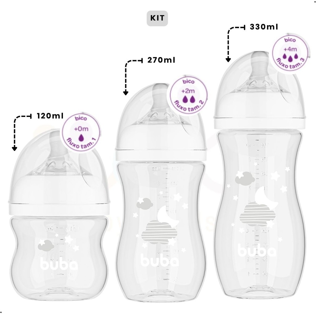 Kit 3 Mamadeiras Anticólica Buba 120ml, 270ml e 330ml Easy Flow Nunvem