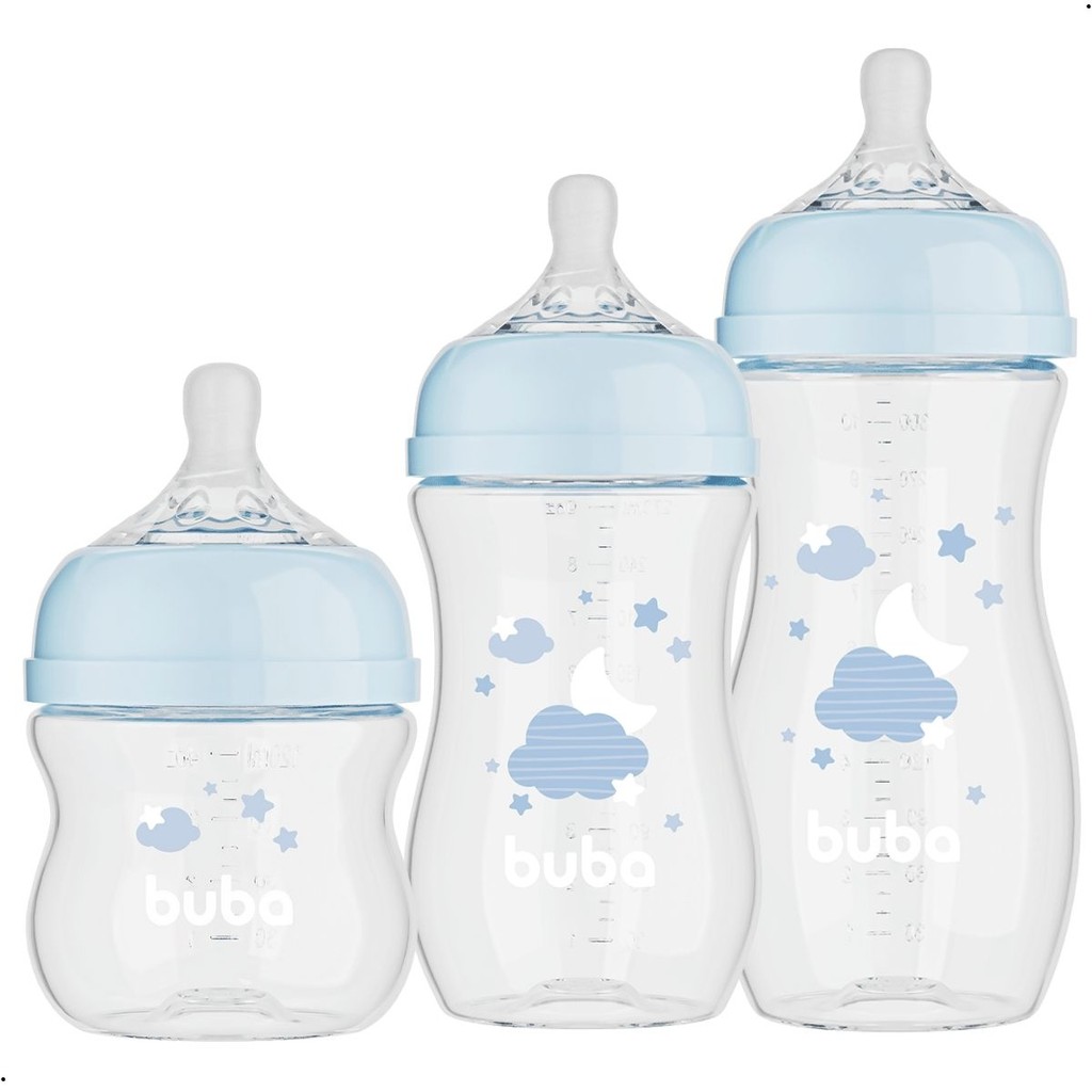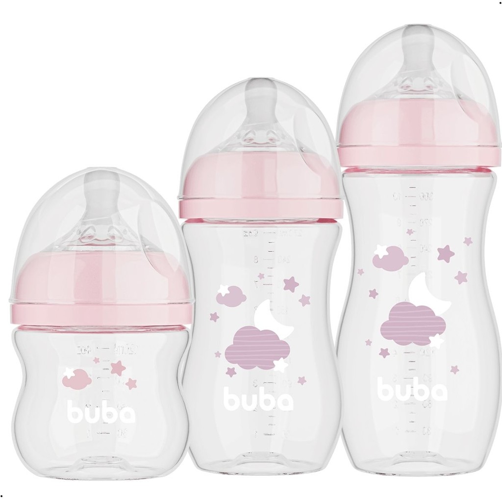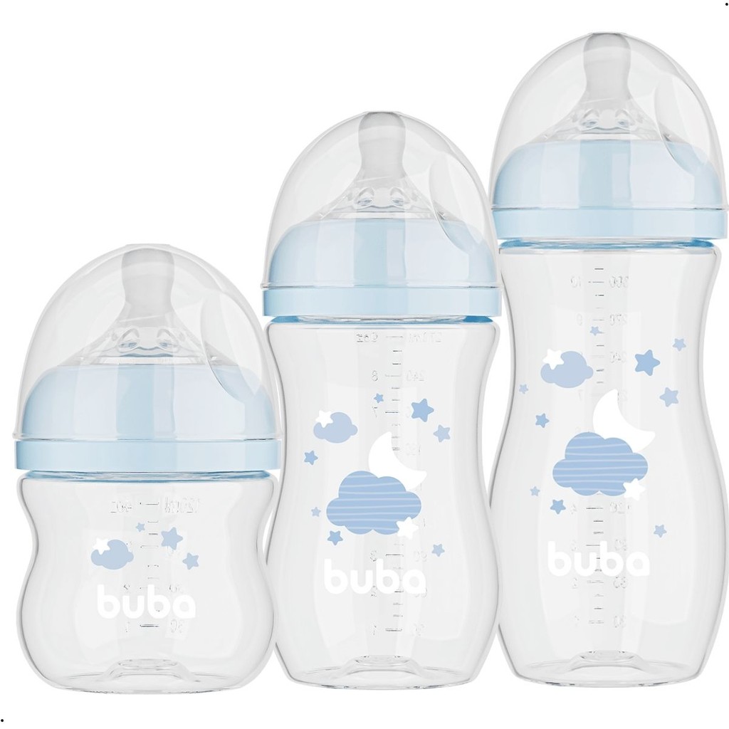 Kit 3 Mamadeiras Anticólica Buba 120ml, 270ml e 330ml Easy Flow Nunvem