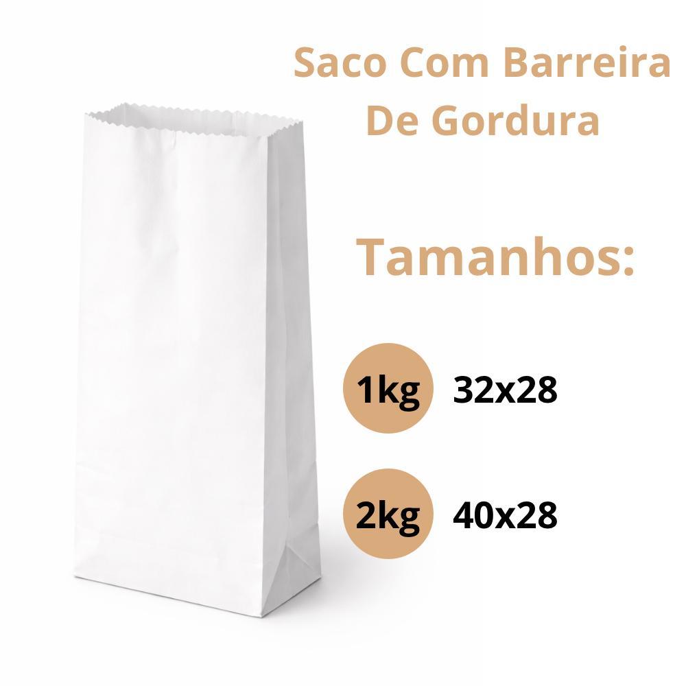 Saquinho de Papel Branco Barreira de Gordura (1kg/2kg) 50/100 unidades