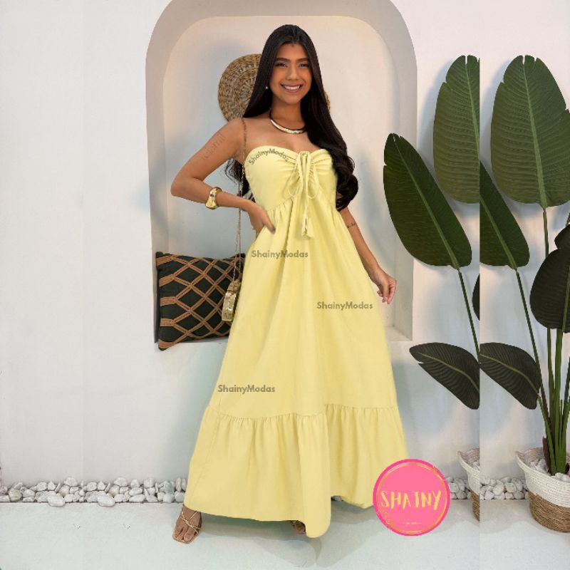 Vestido Longo Tomara que Caia com Amarração - Tendência Verão 2026