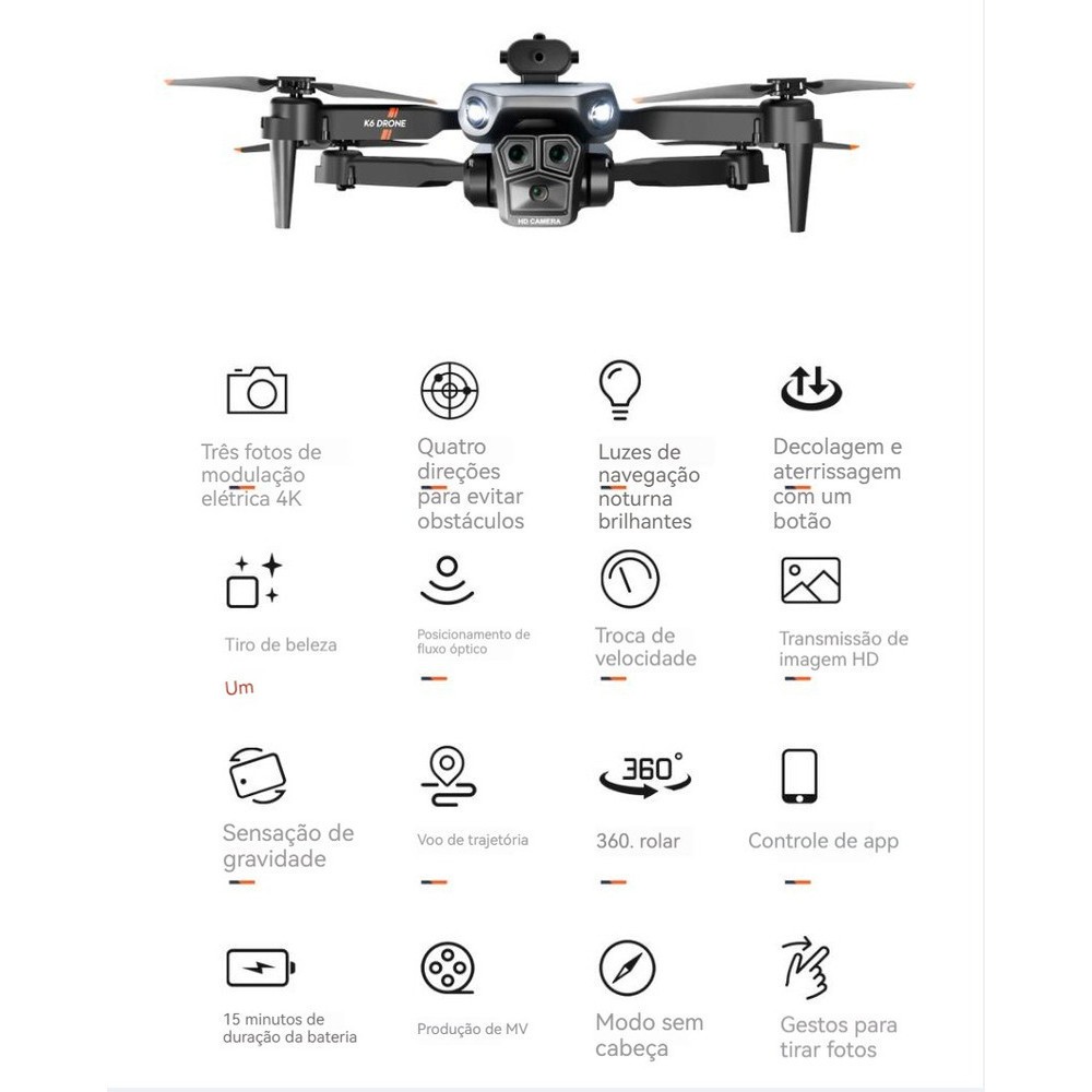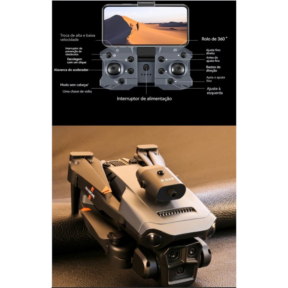 DLI Drone 8k Dual Camera Evitação Obstáculos 360° Roll Com 2.4G Controle Remoto WIFI