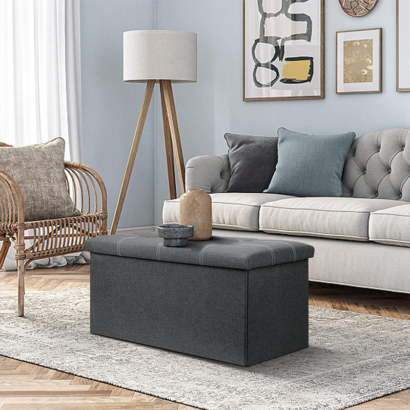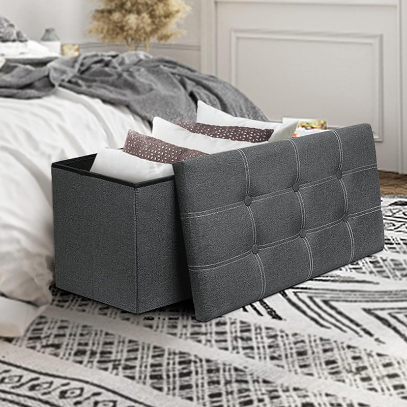 Puff Baú pé de cama 90 cm no Sued Capitone (porta objetos e brinquedos)