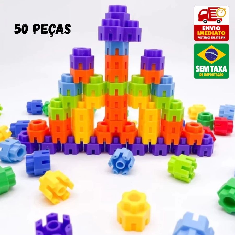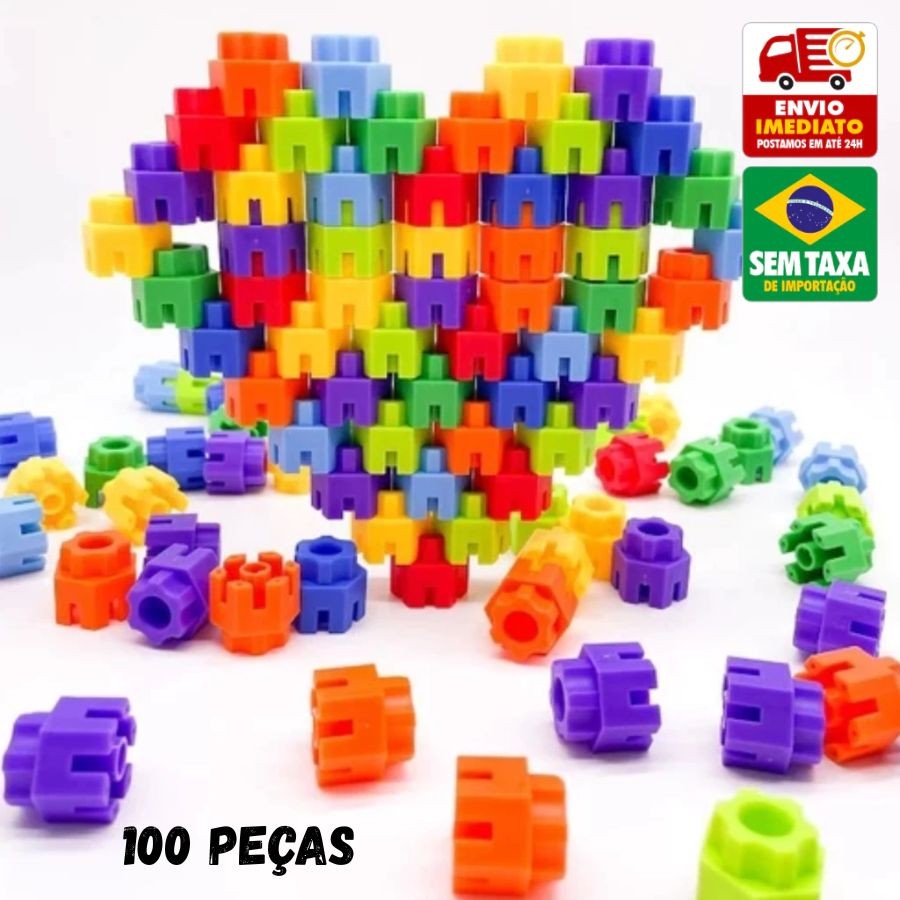 Blocos de Montar 100/50 Peças Pedagogico Infantil Educação Criatividade e Diversão