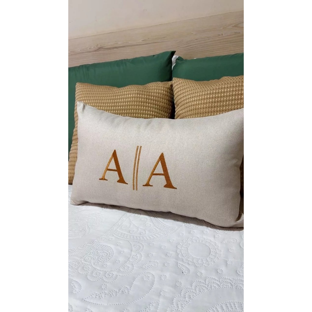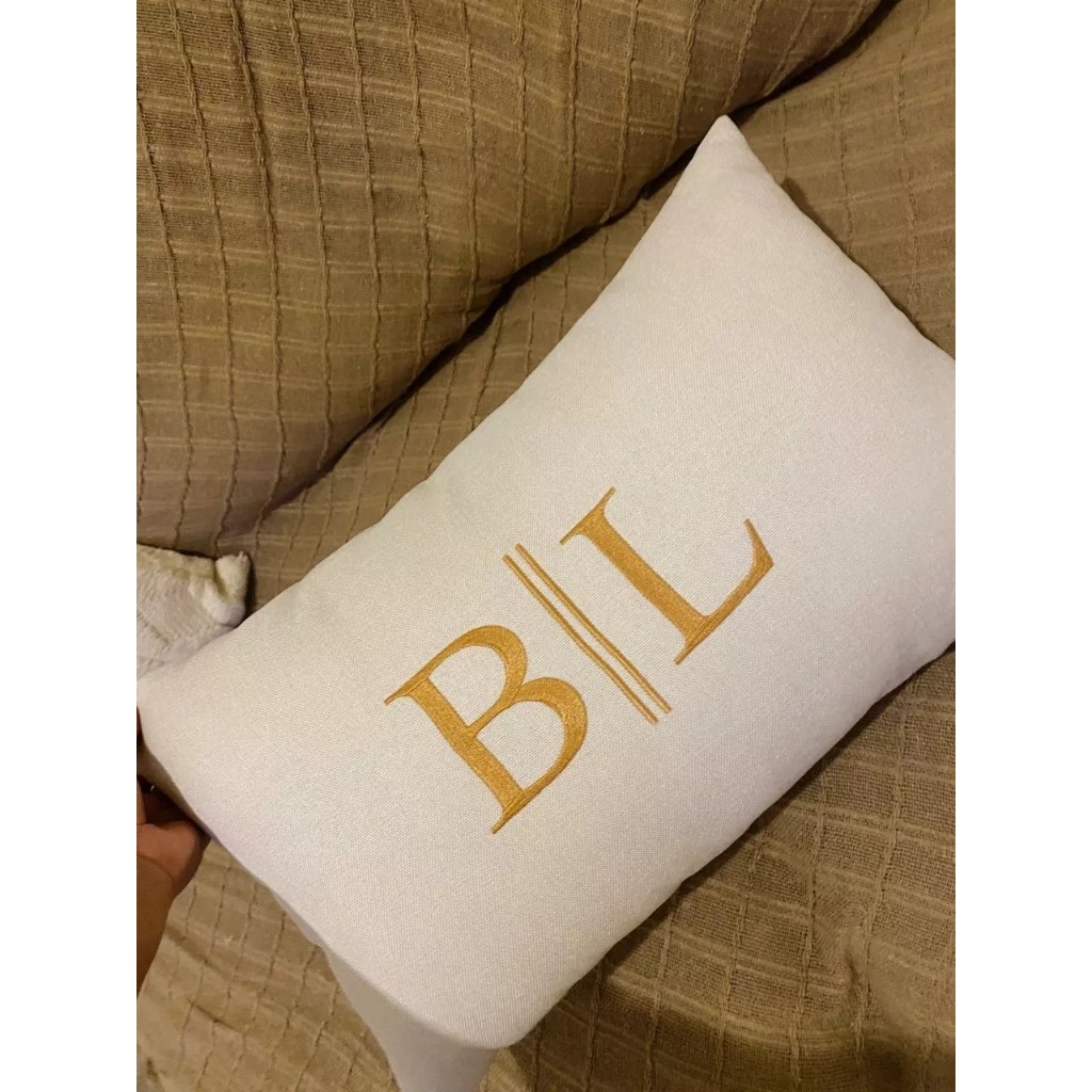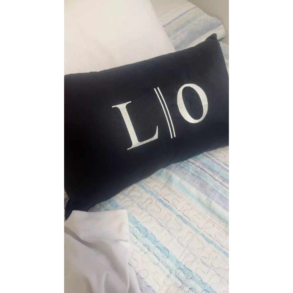 Almofada com 2 Iniciais Bordada Personalizada em Linho ou Veludo, com Enchimento 50x30cm