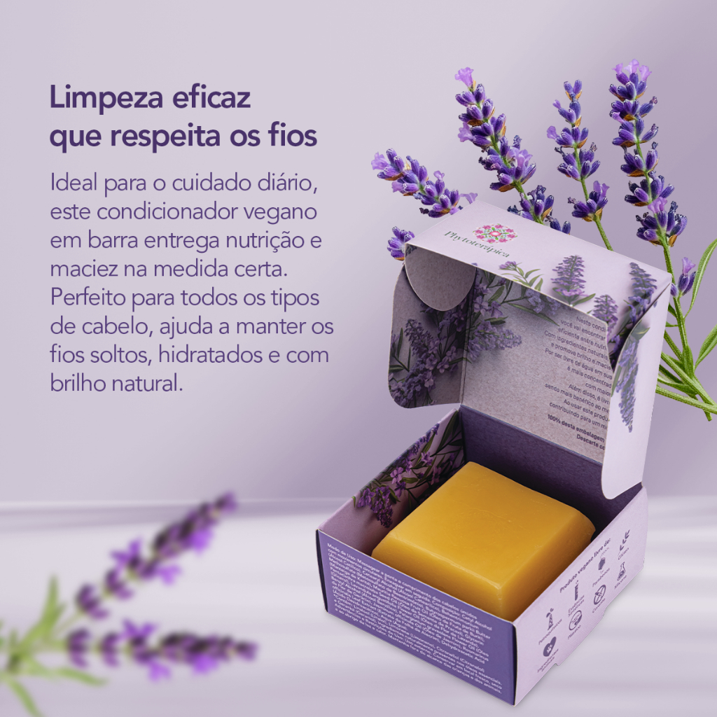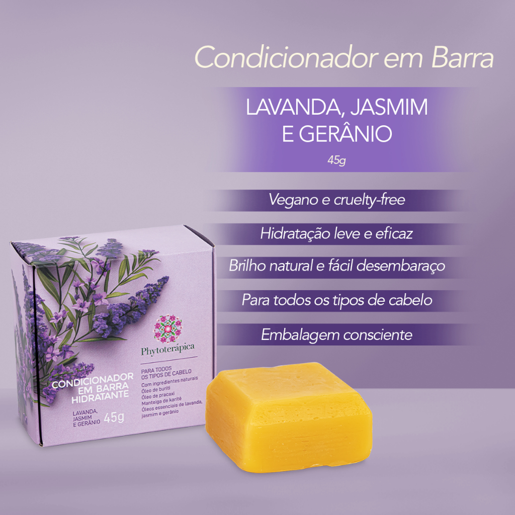 Phytoterápica Condicionador em Barra Vegano Lavanda, Jasmim e Gerânio 45g – Hidratação e Brilho
