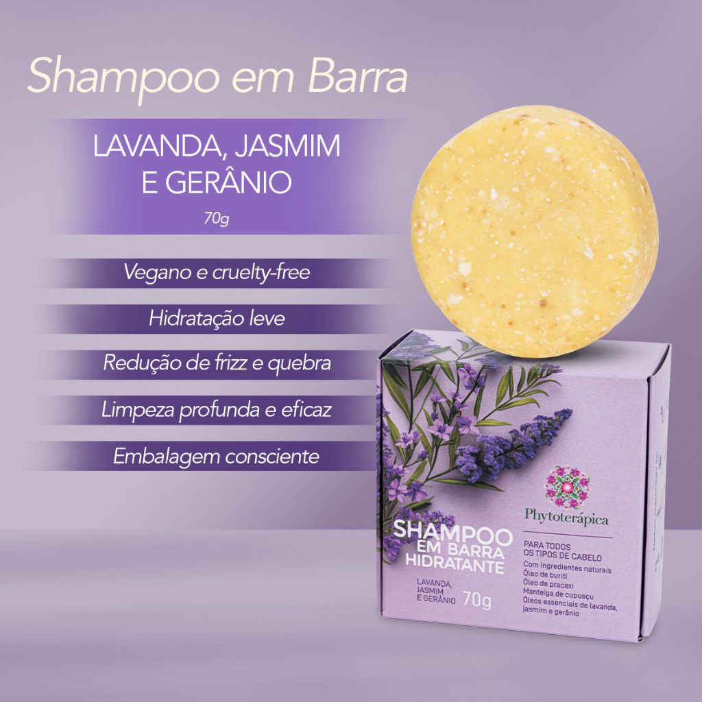 Phytoterápica Shampoo em Barra Vegano Jasmim, Lavanda e Gerânio 70g – Hidratação e Suavidade