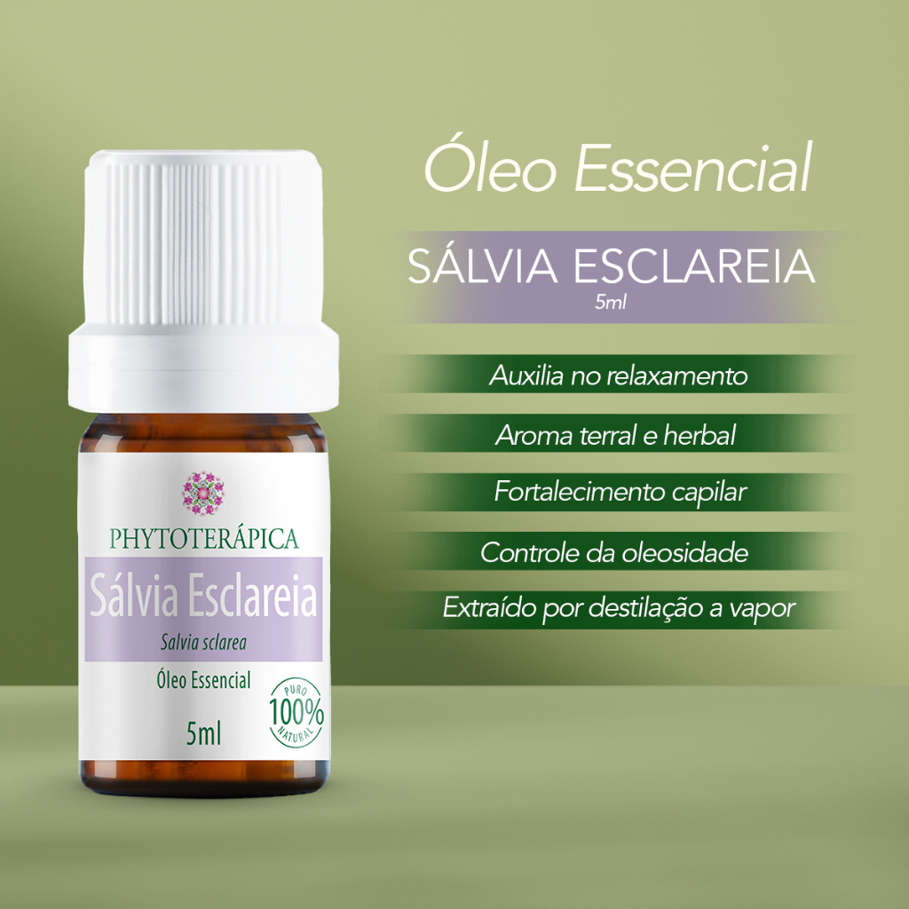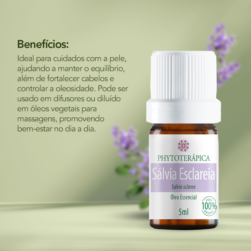Phytoterápica Óleo Essencial Sálvia Esclareia 5ml – Natural – Aromaterapia, Equilíbrio e Bem-Estar​