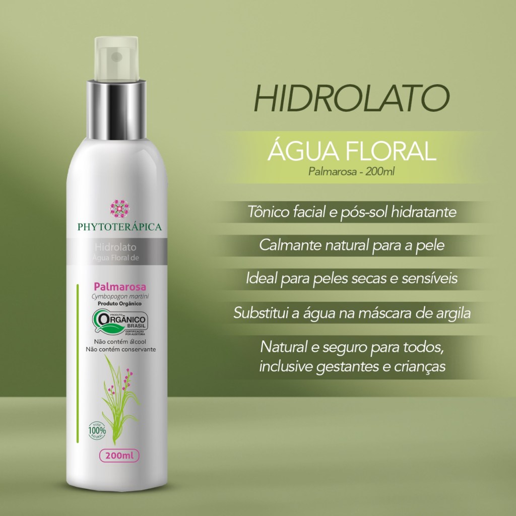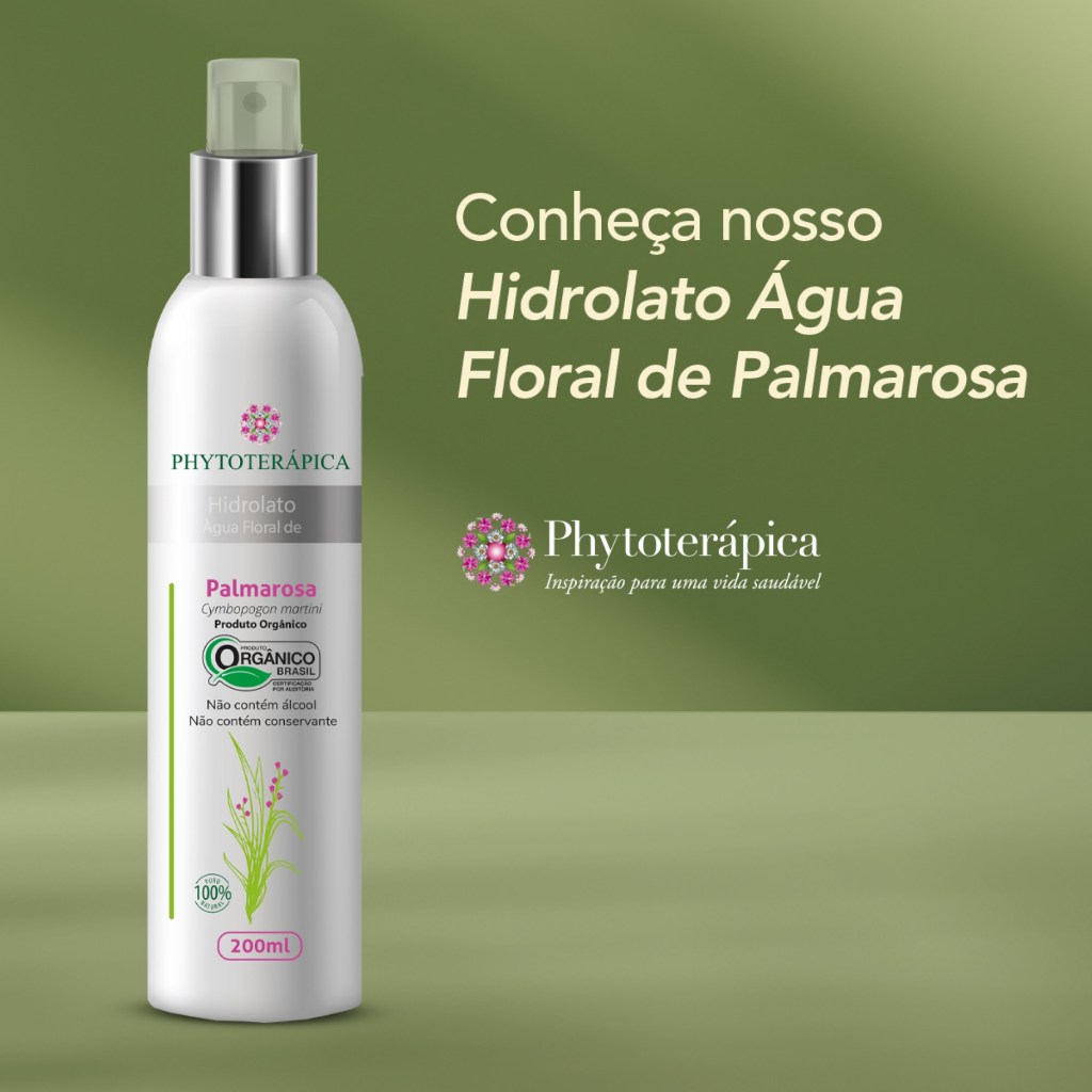 Phytoterápica Água Floral de Palmarosa Orgânica 200ml – Tônico Natural para Pele Oleosa e Sensível