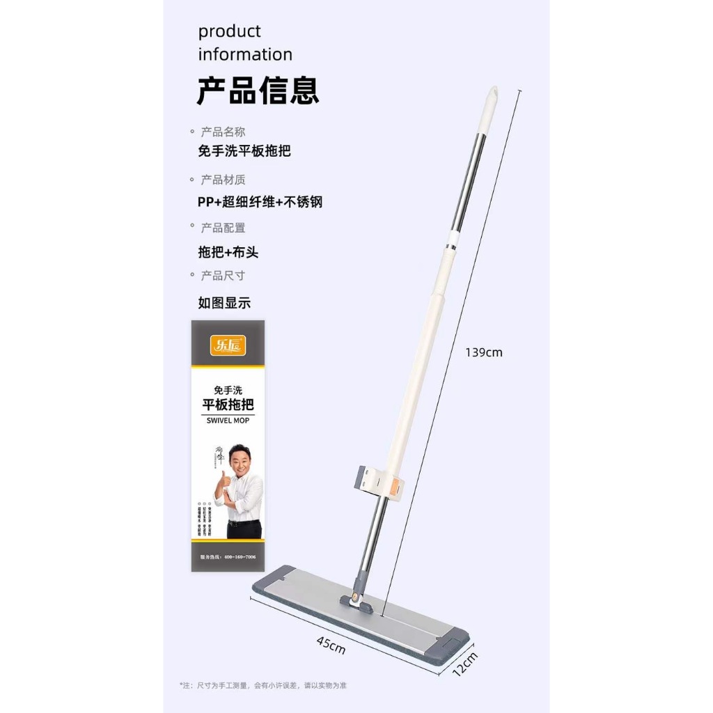 Rodo Mop Esfregao Flat Mop Grande Limpa E Seca C/ 2 Refil