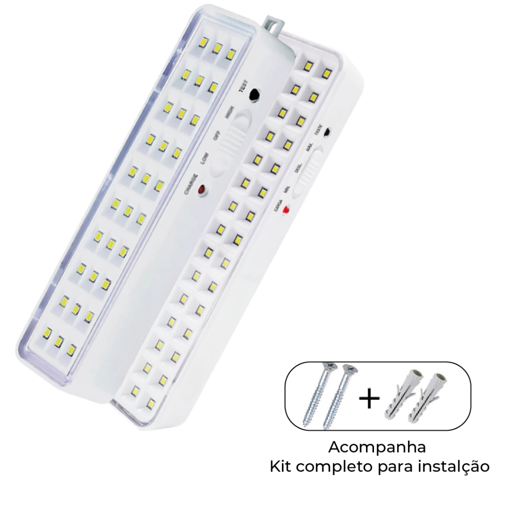 Luminária Emergência Lâmpada 60 Leds Recarregável Bivolt Luz Branca (Branco Frio 6,500K)