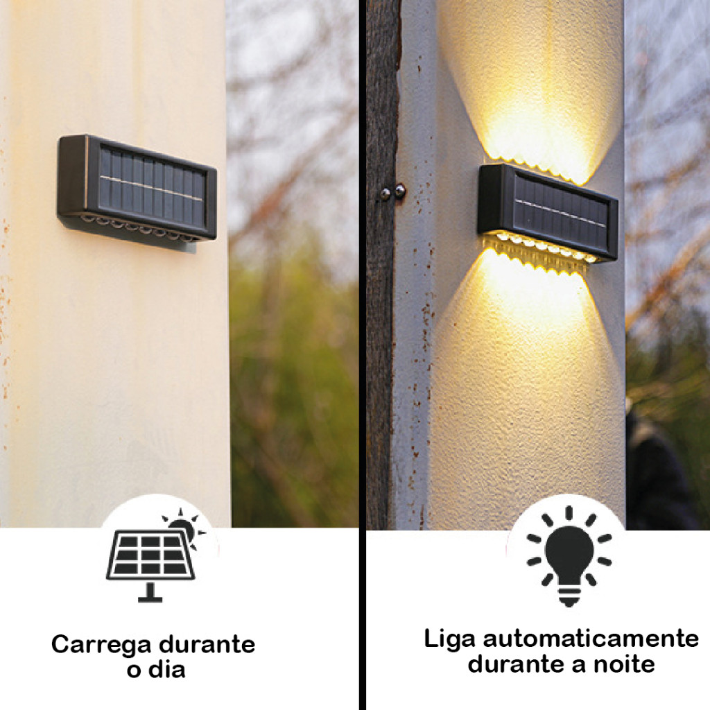 2-8 Luminária Arandela Solar 10 LED Luz Branco Quente para Parede a Prova dágua Spot para parede