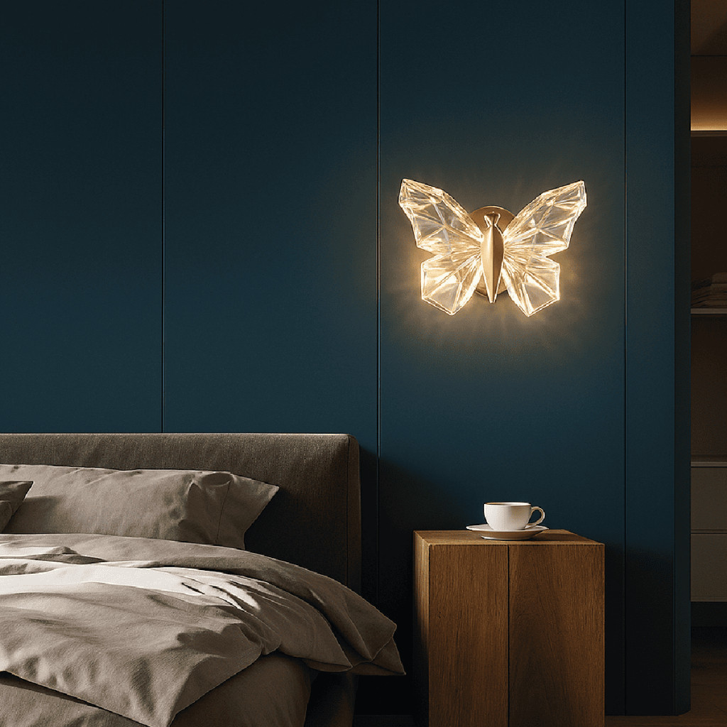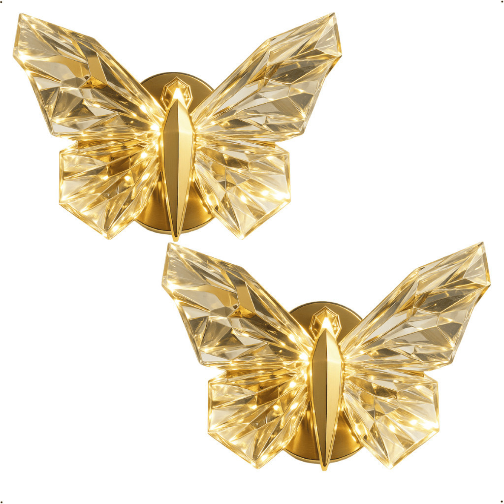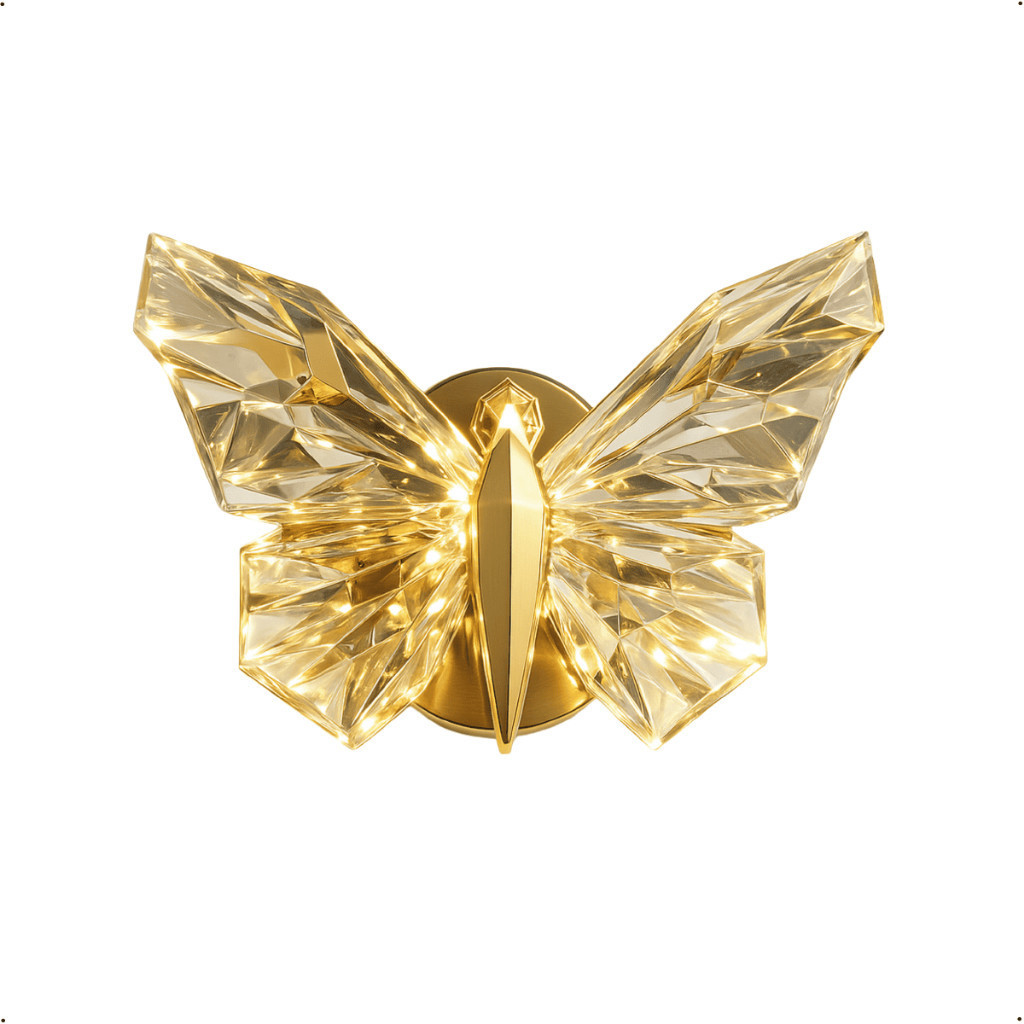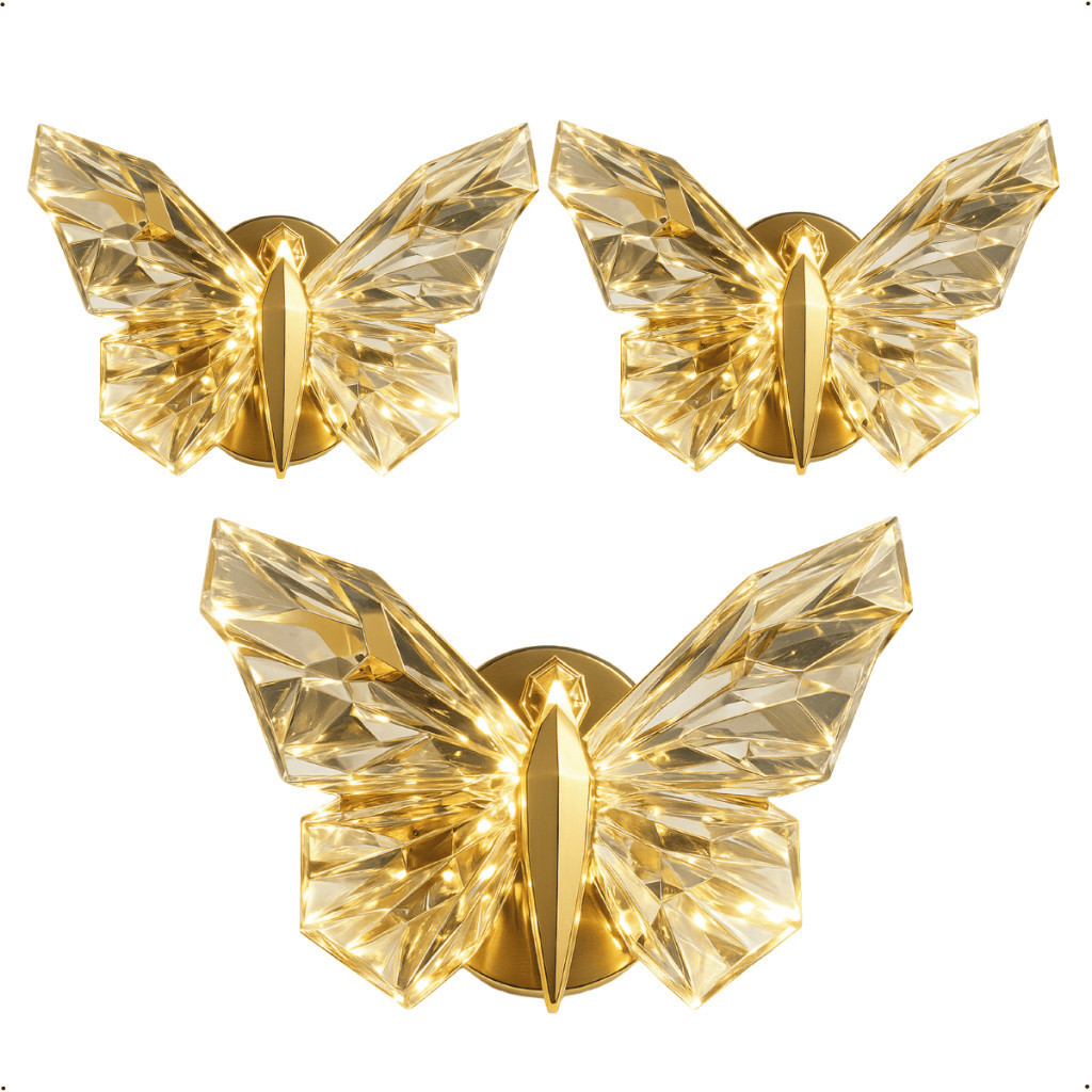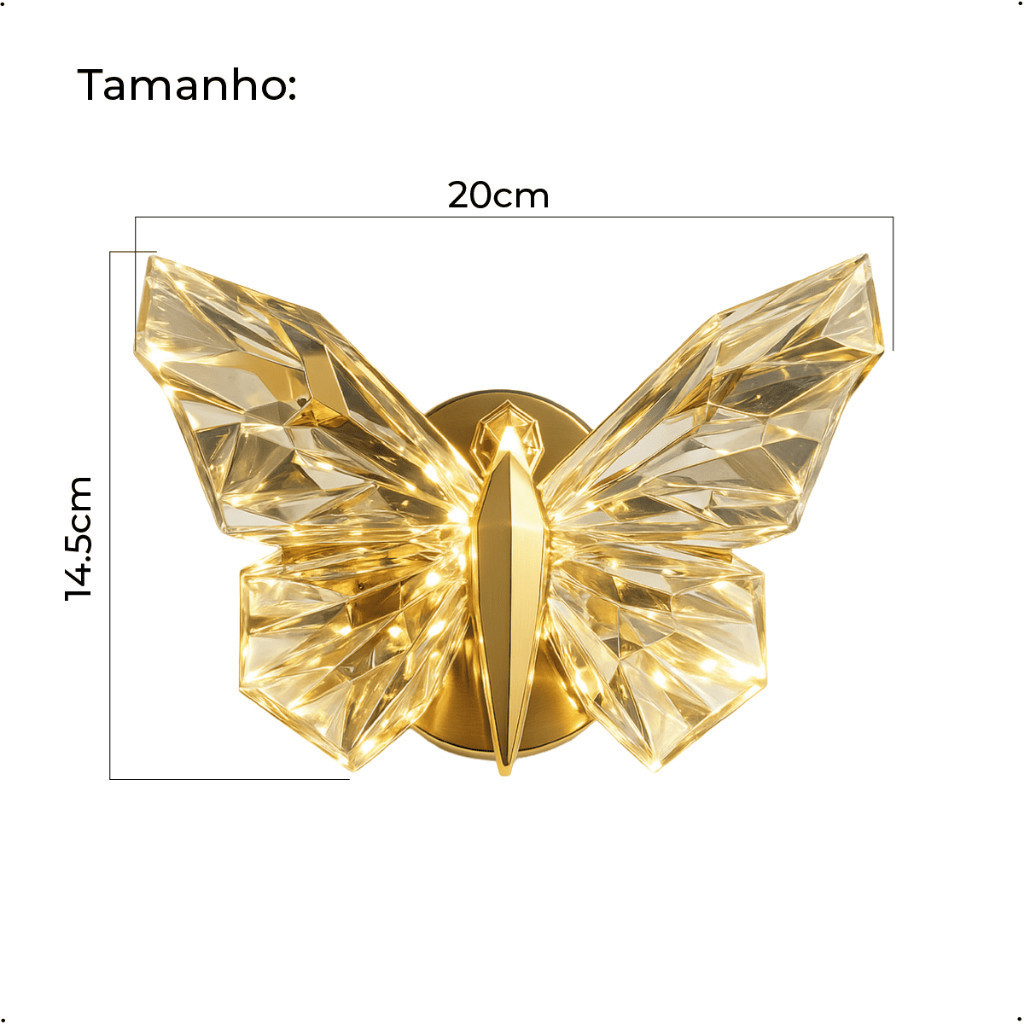 Luminária Arandela Borboleta Led Cristal Dourada de Luxo Moderna Luz para Parede Bivolt