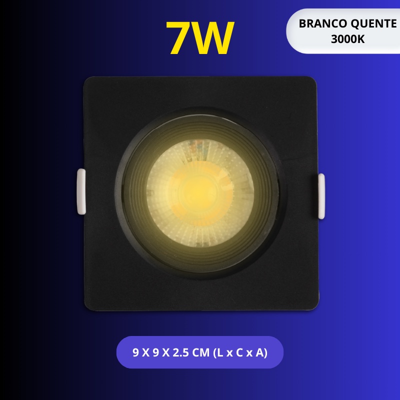 Kit 10 Luminária Spot Led Quadrado Direcionável 7W Embutir Gesso Teto Preto | Branco Frio 6500K (Luz Branca) | Branco Quente 3000K (Luz Amarela) Bivolt Spot Super LED Pronta Entrega