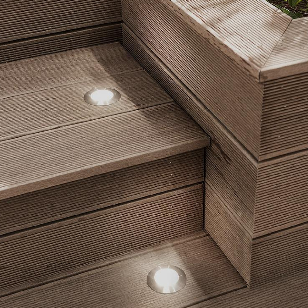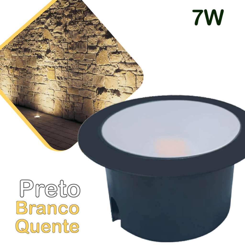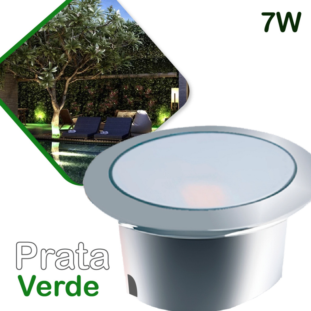 Balizador Spot LED Embutir Chão Piso Jardim 7W Luz Quente e Verde IP65 Bivolt 60Hz