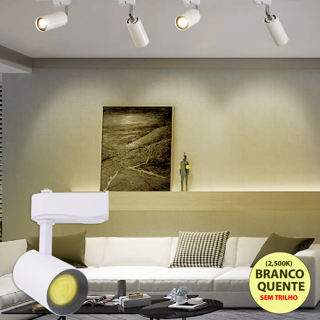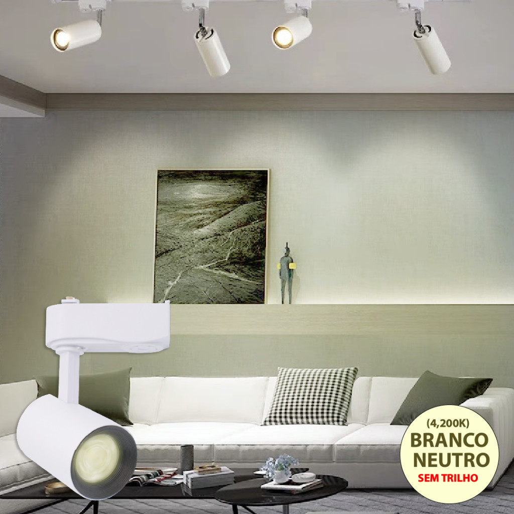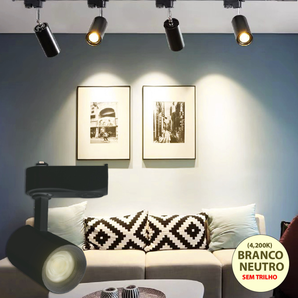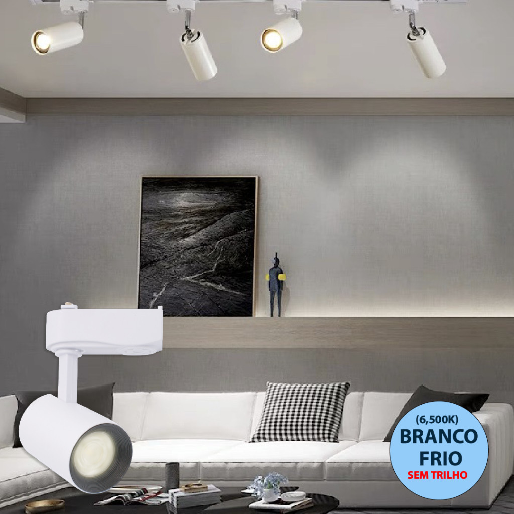 6 Trilho Spot LED para trilho eletrificado Preto e Branco 10W 360° | Luz Branca, Neutra e Amarela | Bivolt 110V-220V