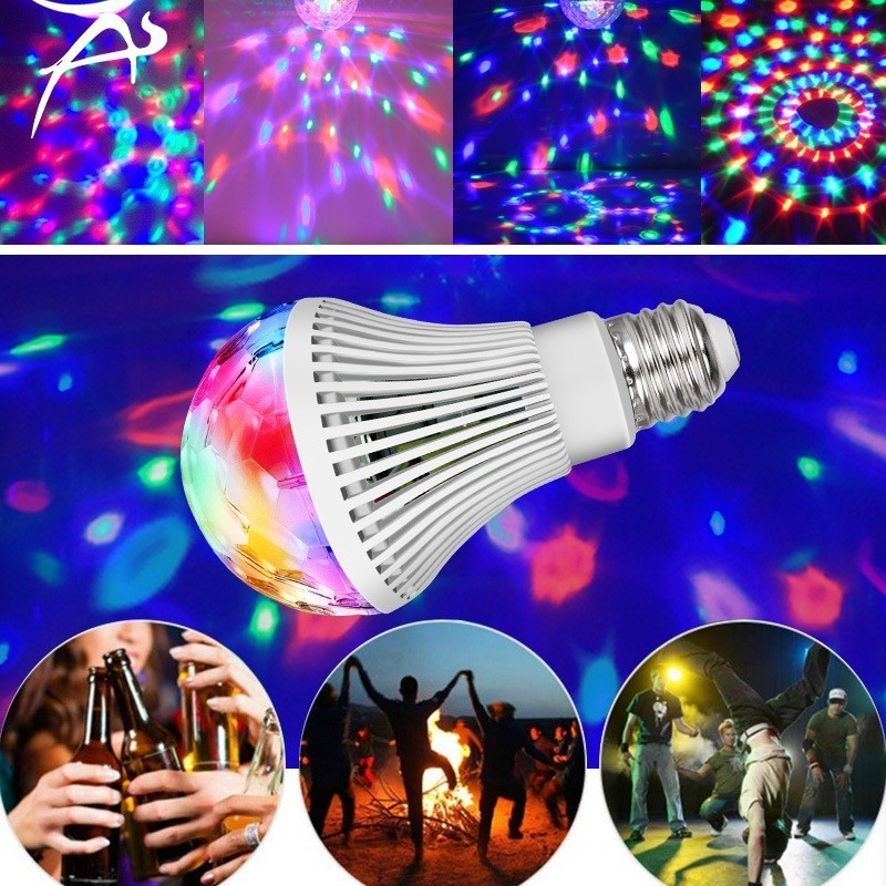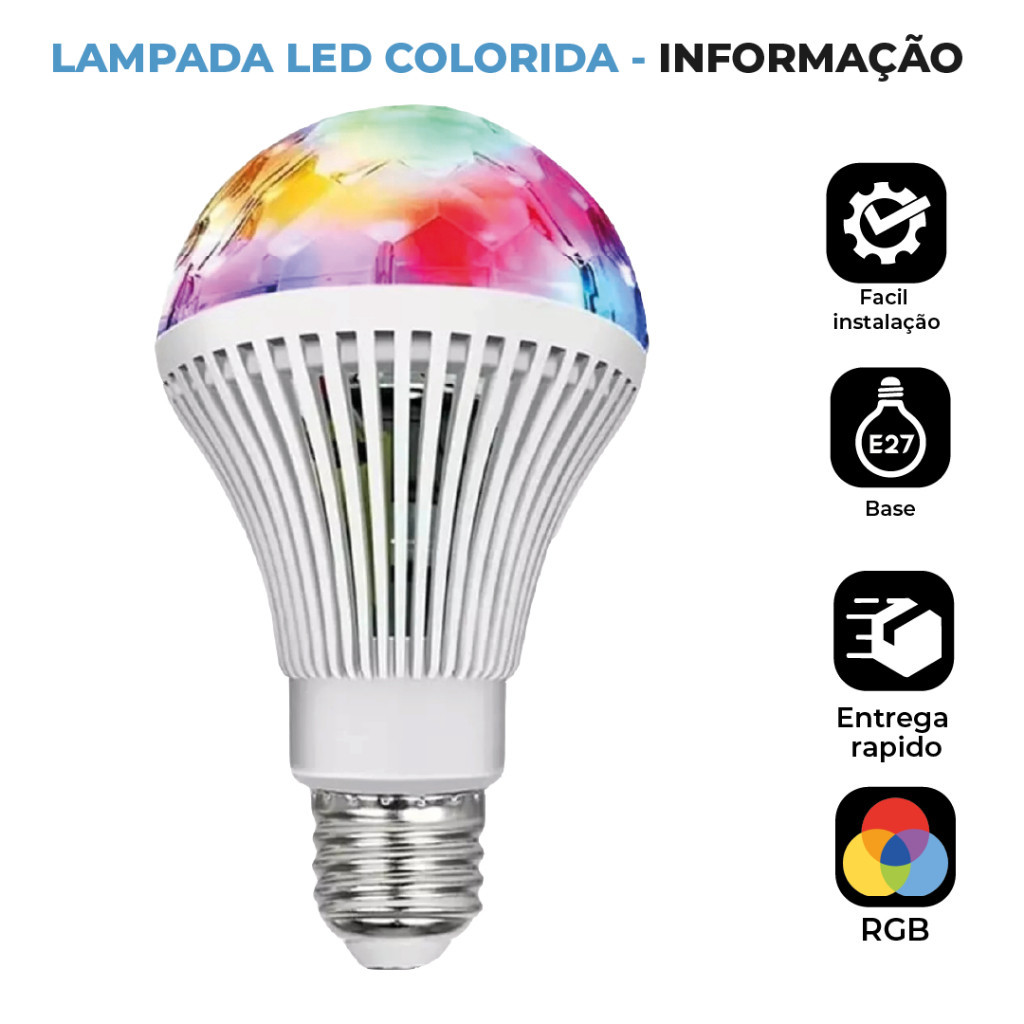 Lâmpada Giratória Colorida Led Bola Maluca Rgb + Adaptador Tomada para Festas Baladas | Novo Modelo