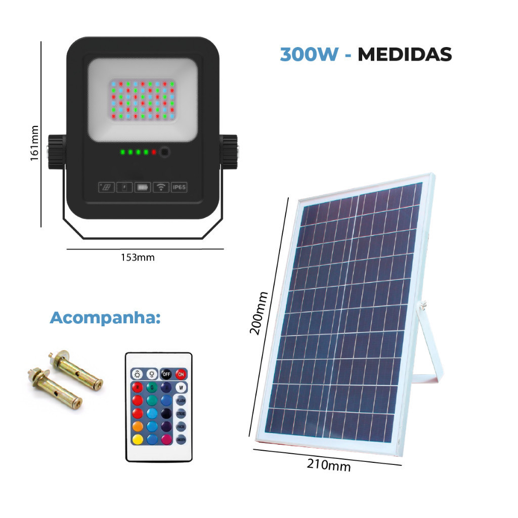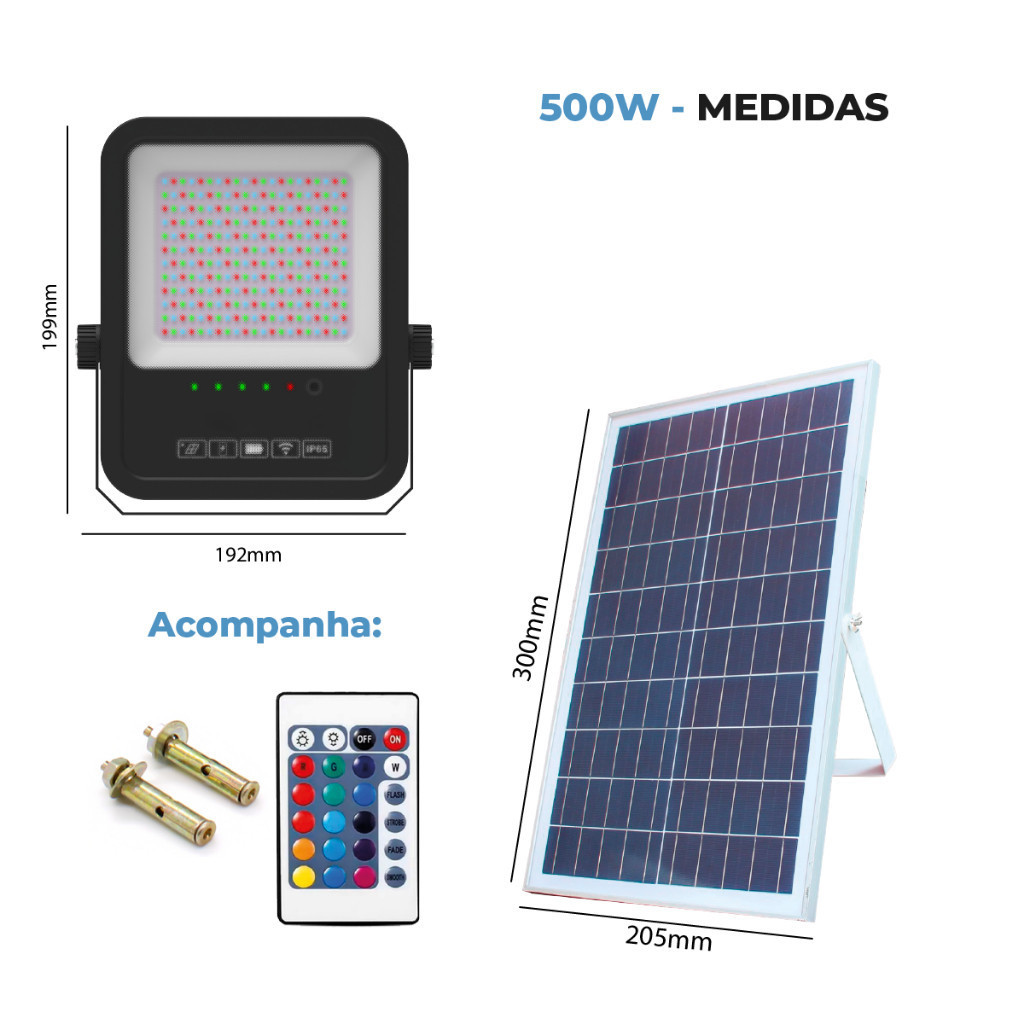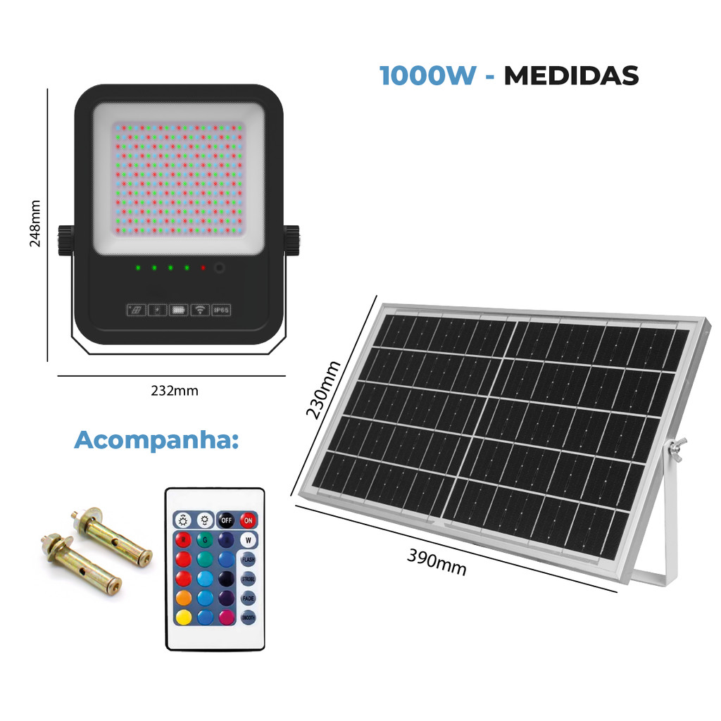 Holofote Refletor Led RGB 1000W 500W 300W Solar Prova D'àgua placa Solar p/ Ambientes Externos
