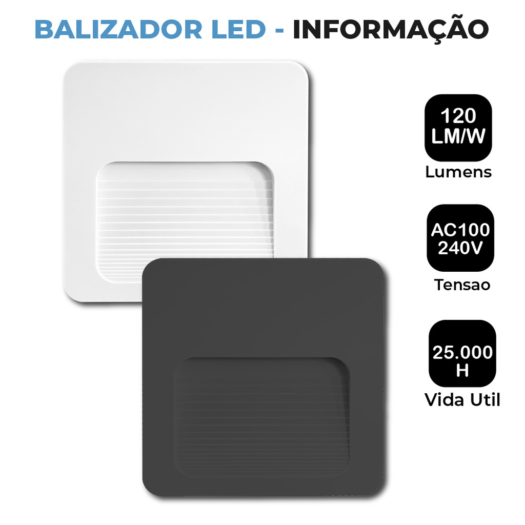 Balizador Led Externo IP65 Super Led 2w Branco Quente Padrão Escada Parede Sobrepor Bivolt