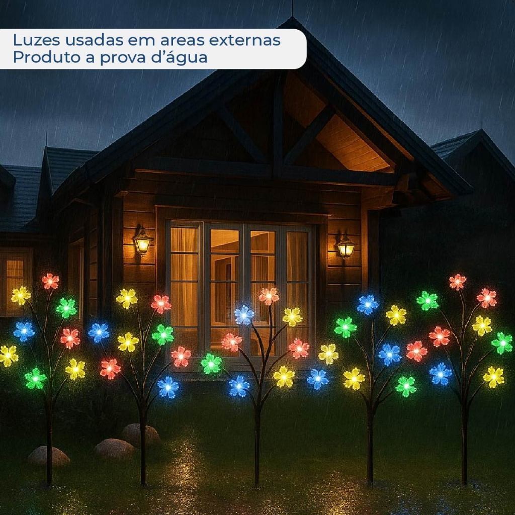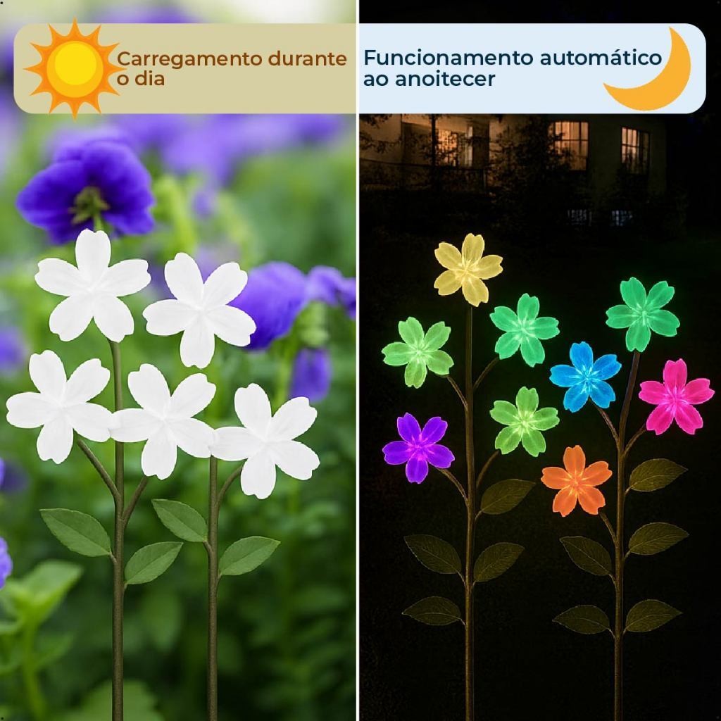 Espeto Jardim Solar Flor de Cerejeira RGB com Placa Solar Prova D'água ambiente externo