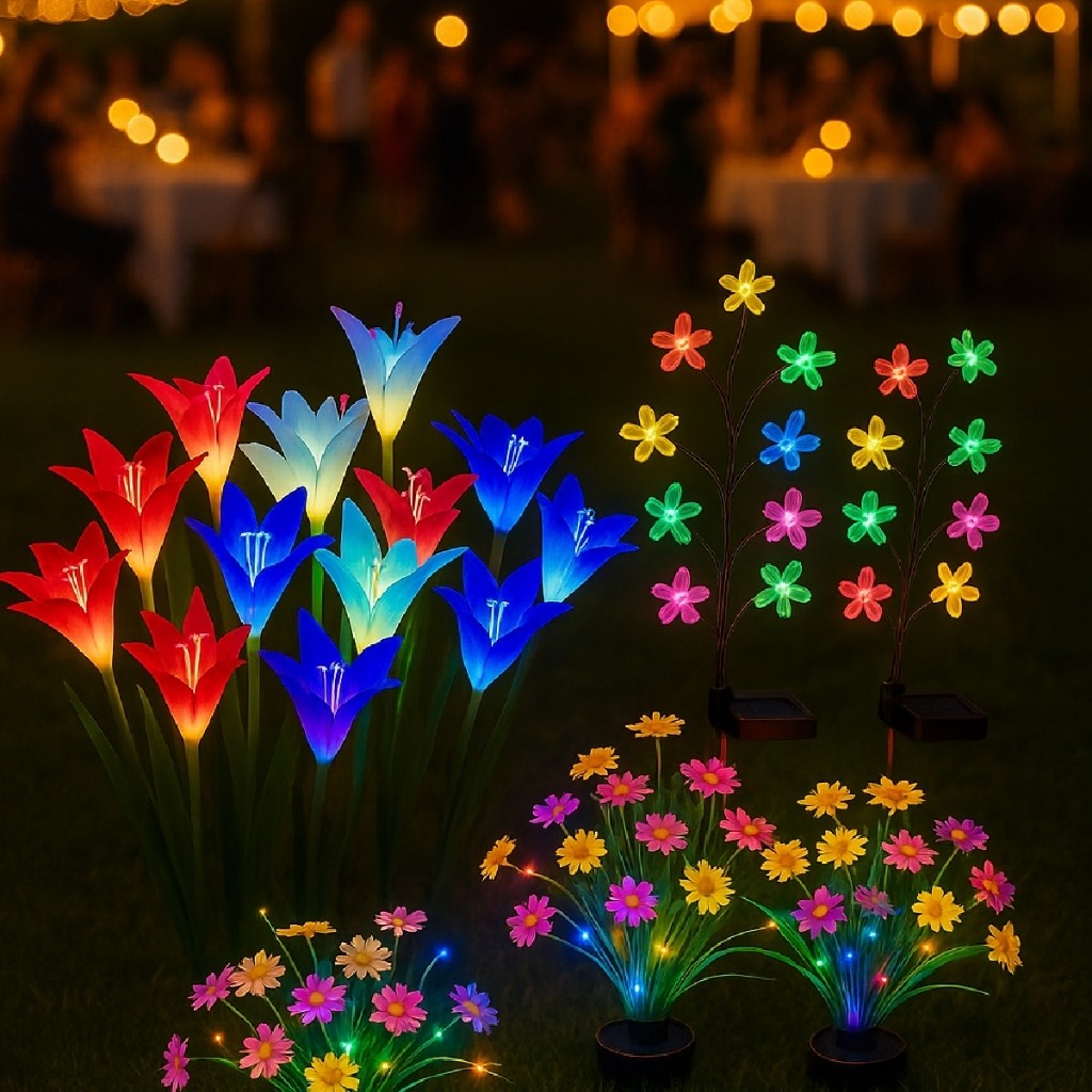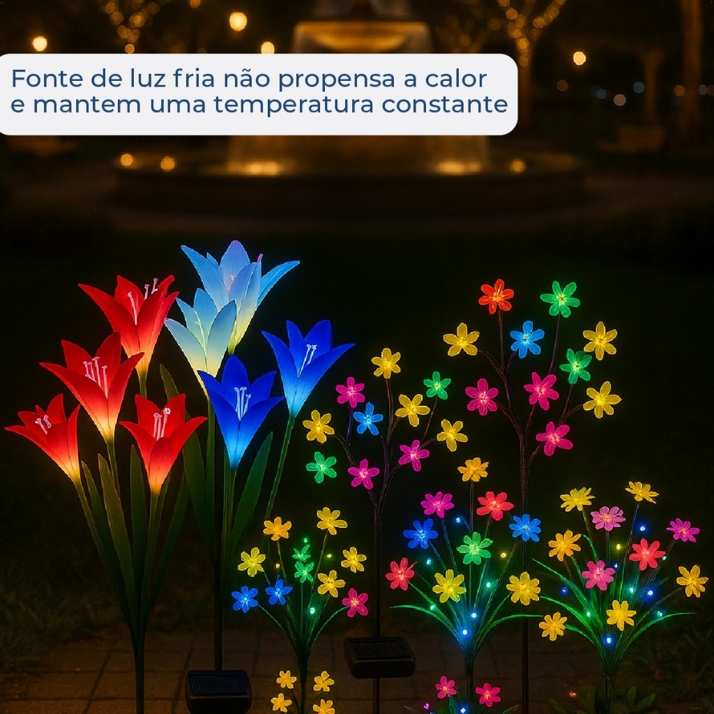 Espeto Jardim Flores Solares com Placa Solar RGB Led Prova d'água Ambiente Externo Diversos modelos