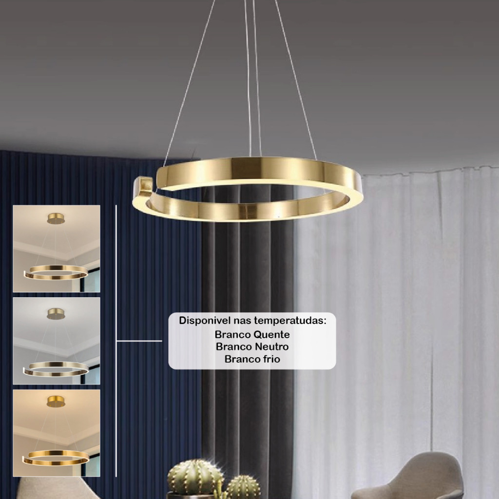 Pendente Lustre Dourado Luxo Moderno Luz Quente Luminária Anel 110V-220V Bivolt